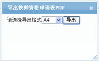 申請人登錄網(wǎng)上報名系統(tǒng)后,在頁面右上方“認定提示”欄中有“導出教師資格申請表PDF”鏈接,點擊該鏈接,根據(jù)申請表打印紙張大小要求,選擇導出格式,點擊“導出”按鈕,教師資格認定申請表則以PDF的格式呈現(xiàn),點擊PDF閱讀器里的保存按鈕,教師資格申請表則以PDF格式保存到本地機上。(您的計算機里必須安裝PDF閱讀器才能打開下載的PDF格式申請表)