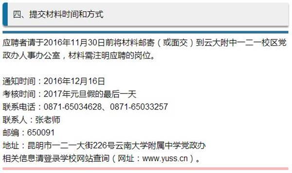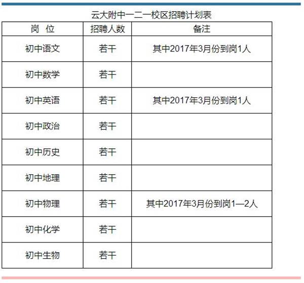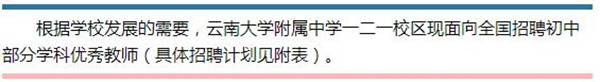 云南大學(xué)附屬中學(xué)一二一校區(qū)2017年教師招聘公告
