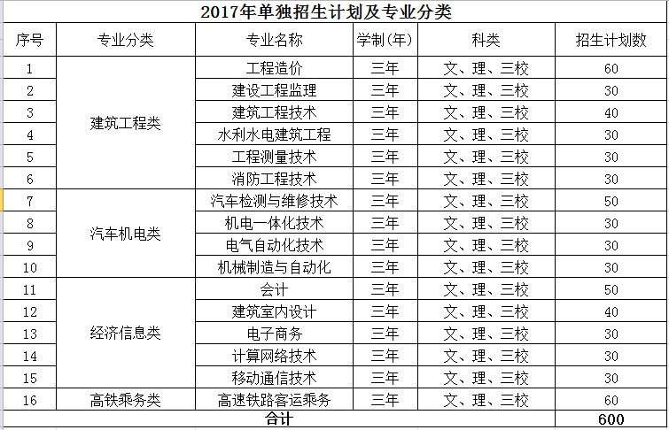 云南工程職業(yè)學(xué)院2017年單獨(dú)招生章程