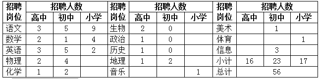 學(xué)校現(xiàn)有學(xué)生2000余人,云集了部屬六所師大及全國(guó)部分重點(diǎn)大學(xué)畢業(yè)的優(yōu)秀教師180余人(其中:全日制碩士學(xué)歷45人、全日制本科學(xué)歷135人),這里能為有志于基礎(chǔ)教育的優(yōu)秀人才提供堅(jiān)實(shí)的平臺(tái)?,F(xiàn)面向全國(guó)招聘小學(xué)、初中和高中各學(xué)科優(yōu)秀教師,招聘計(jì)劃見(jiàn)下表: