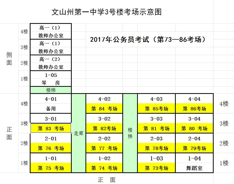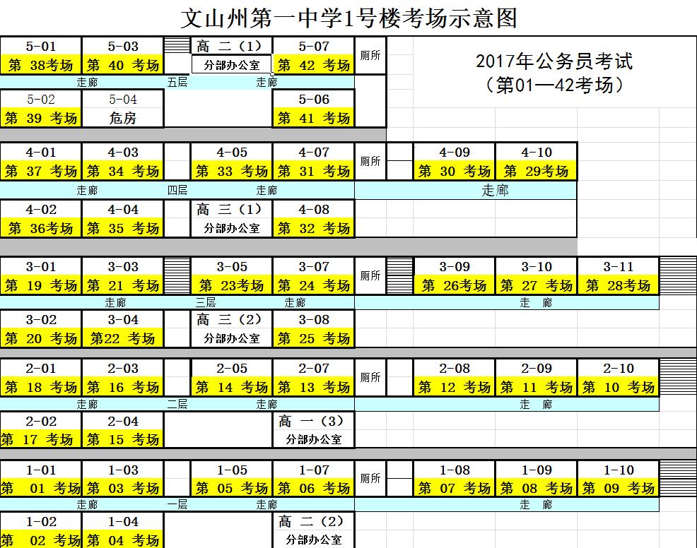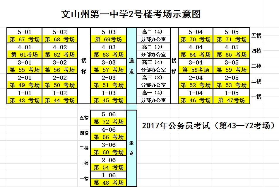 2017年文山州第一中學(xué)公務(wù)員考試考點(diǎn)考場(chǎng)分布示意圖