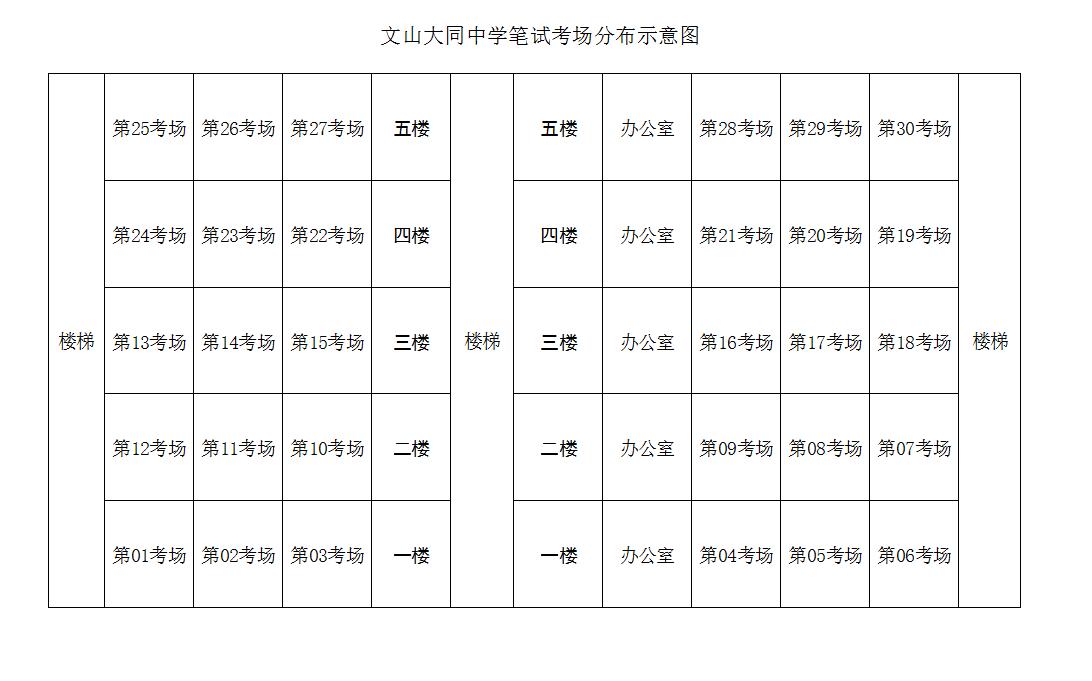 2017年文山大同中學公務員考試考點考場分布示意圖