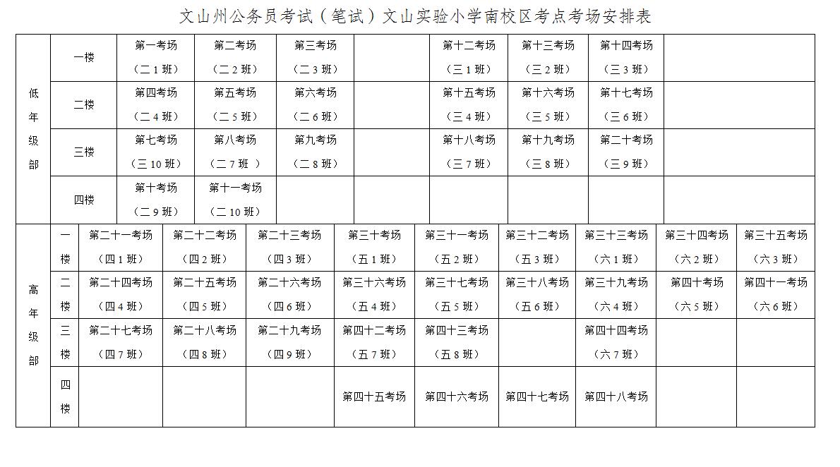 2017年文山實驗小學(xué)南校區(qū)公務(wù)員考試考點考場分布示意圖