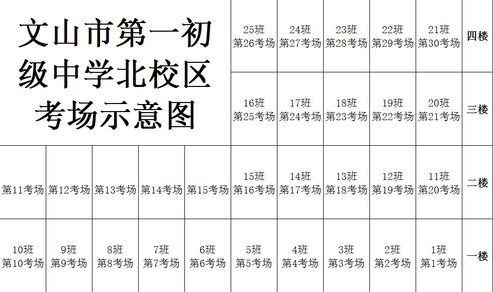 2017年文山市第一初級中學北校區(qū)公務員考試考點考場分布示意圖