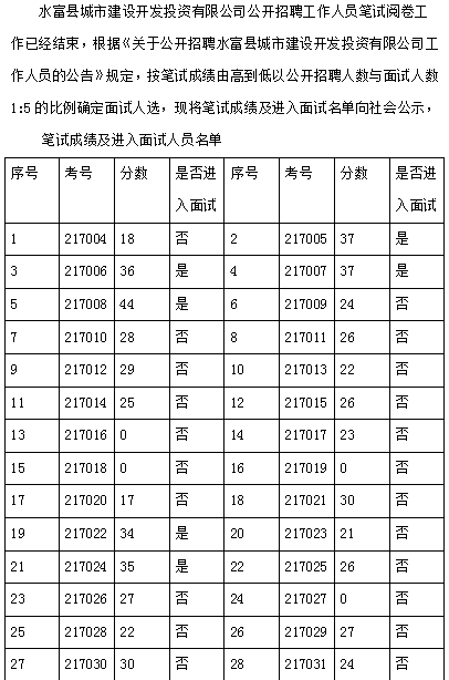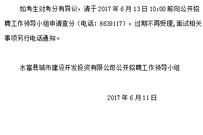 水富縣城市建設開發(fā)投資有限公司 工作人員筆試成績公示