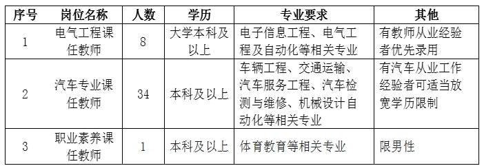3.年齡不超過35歲,有汽車從業(yè)工作經(jīng)驗者可適當(dāng)放寬年齡限制。