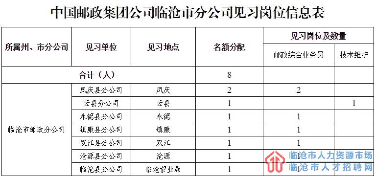 見習崗位及接收人數(shù)詳見“臨滄市郵政分公司接收見習崗位人員分配表”(附件1)