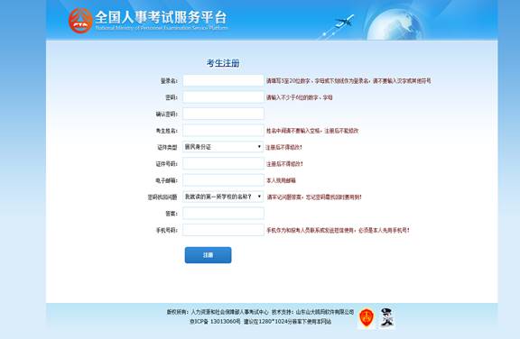 點(diǎn)擊“注冊(cè)”按鈕,進(jìn)入考生注冊(cè)頁面,如下圖所示:
