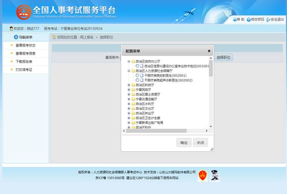 考生也可以點(diǎn)擊“選擇職位”按鈕,通過樹形菜單選擇對(duì)應(yīng)的職位,如下圖所示: