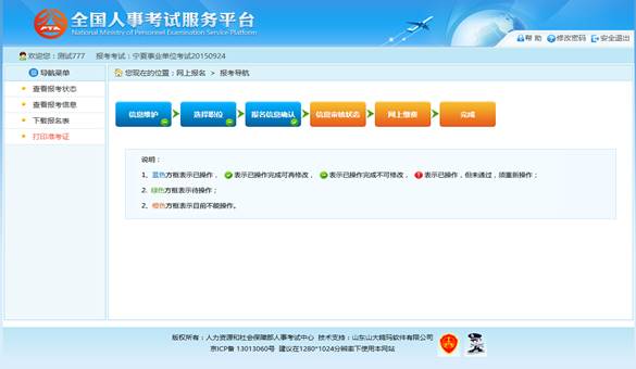 通過點(diǎn)擊“確認(rèn)”按鈕,提示確認(rèn)成功后跳轉(zhuǎn)到報(bào)考流程頁面,如下圖所示: