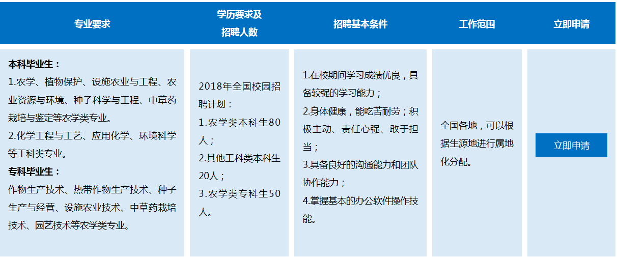 發(fā)展機(jī)會(huì):近年來(lái)公司營(yíng)銷、農(nóng)化人員隊(duì)伍呈爆發(fā)式增長(zhǎng),公司倡導(dǎo)“以?shī)^斗者為本,以價(jià)值創(chuàng)造者為本”的核心價(jià)值理念,給年輕有為的員工提供了大平臺(tái)、大發(fā)展的機(jī)會(huì),有能力、有業(yè)績(jī)、有擔(dān)當(dāng)?shù)膯T工得到了快速提拔重用。