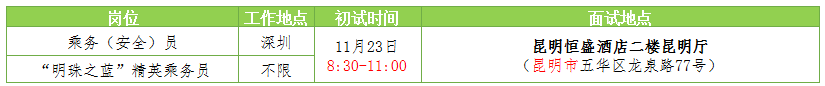 南方航空2017年乘務(wù)(安全)員招聘計劃(秋季招聘-昆明站)