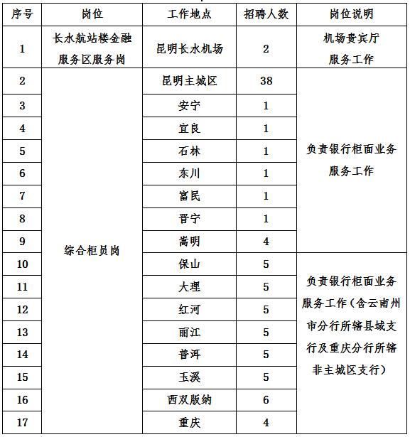 云南高創(chuàng)人才服務(wù)有限公司為富滇銀行招聘選派勞務(wù)派遣制人員90人,現(xiàn)將相關(guān)事項(xiàng)公告如下: