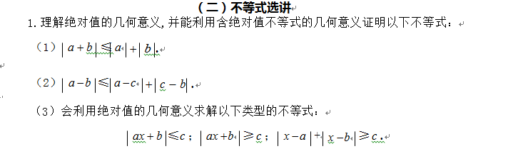 本部分包括必考內(nèi)容和選考內(nèi)容兩部分.必考內(nèi)容為《課程標準》的必修內(nèi)容和選修系 列 1 的內(nèi)容;選考內(nèi)容為《課程標準》的選修系列 4 的“坐標系與參數(shù)方程”、“不等式選講”等 2 個專題.