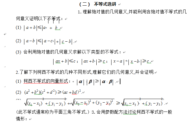 本部分包括必考內容和選考內容兩部分.必考內容為《課程標準》的必修內容和選修系 列 2 的內容;選考內容為《課程標準》的選修系列 4 的 “坐標系與參數(shù)方程”、“不等式選講”等 2 個專題.