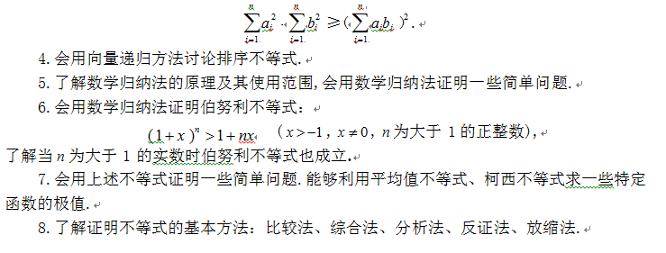 (2)了解間接證明的一種基本方法——反證法;了解反證法的思考過程、特點. 3.數(shù)學歸納法 了解數(shù)學歸納法的原理,能用數(shù)學歸納法證明一些簡單的數(shù)學命題.
