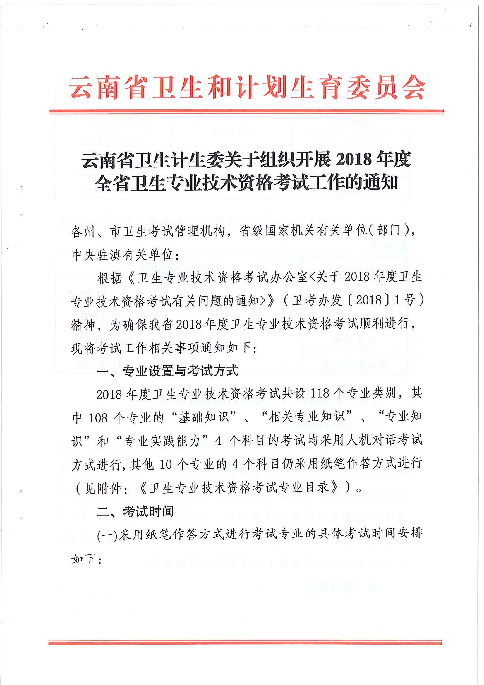 云南省2018年衛(wèi)生專(zhuān)業(yè)技術(shù)資格考試通知