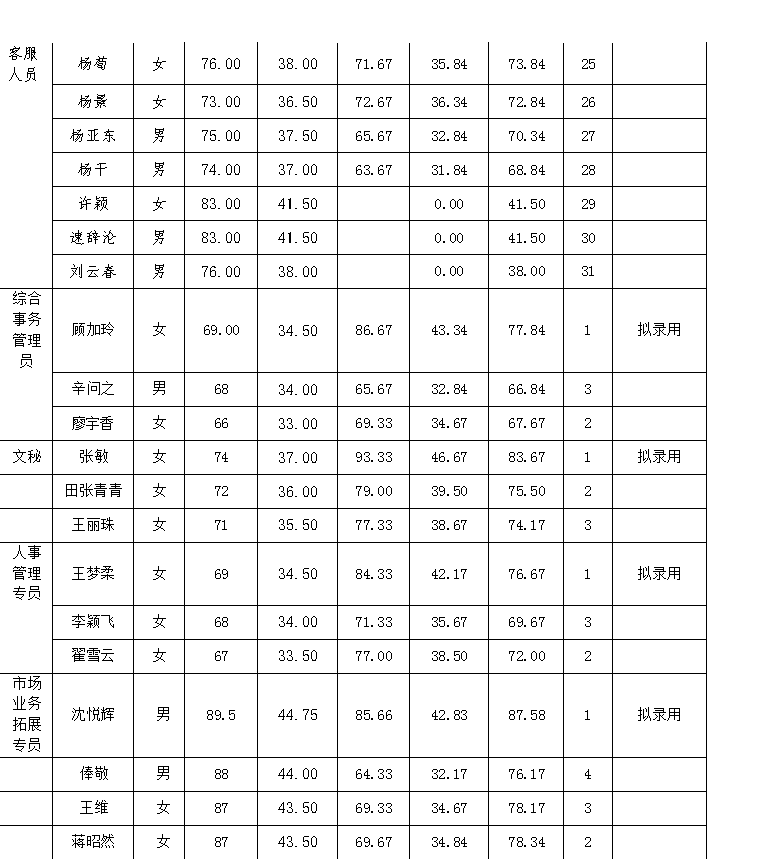 根據(jù)工作需要,昆明智慧通有限公司開展了第一批次部分崗位招聘錄用相關工作。根據(jù)綜合筆面試成績及排名,現(xiàn)對擬錄用人員進行公示,如對擬錄用人員有異議,請及時向昆明智慧通有限公司反映。