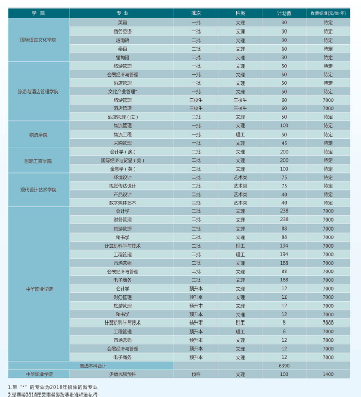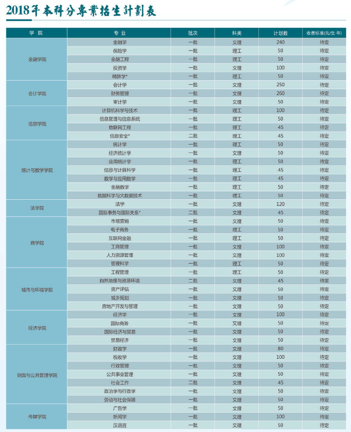 云南財經(jīng)大學(xué)2018年分專業(yè)招生計劃表