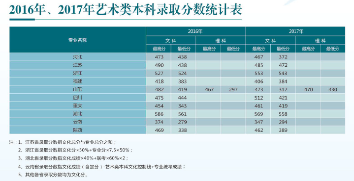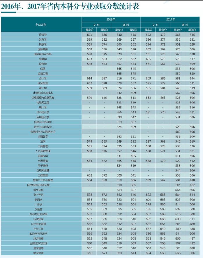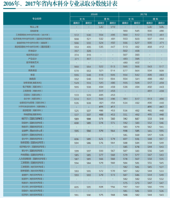 云南財經(jīng)大學(xué)2016-2017年錄取分?jǐn)?shù)統(tǒng)計表