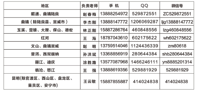 云南工程職業(yè)學(xué)院2018年云南省各地州三年制大專招生負(fù)責(zé)人聯(lián)系方式