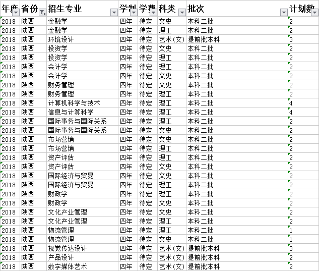 云南財(cái)經(jīng)大學(xué)2018年本科分省招生計(jì)劃表(陜西)