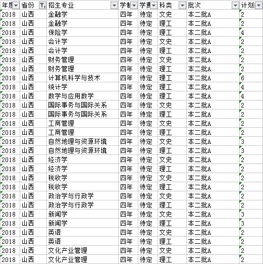 云南財經(jīng)大學(xué)2018年本科分省招生計劃表(山西省)