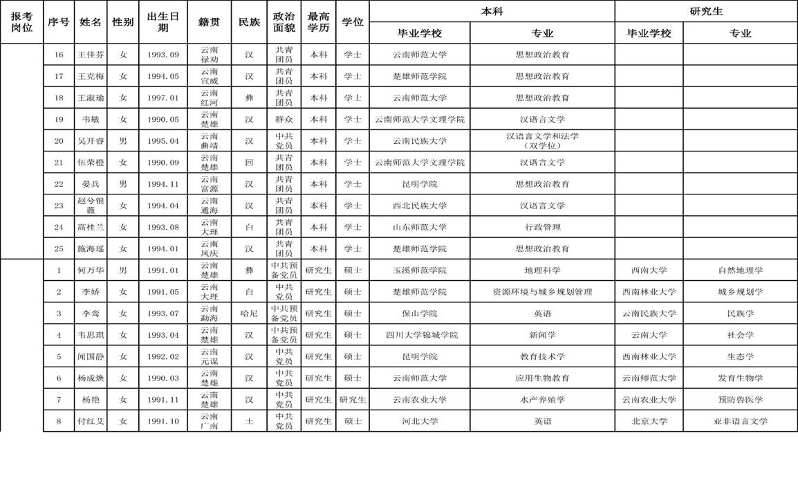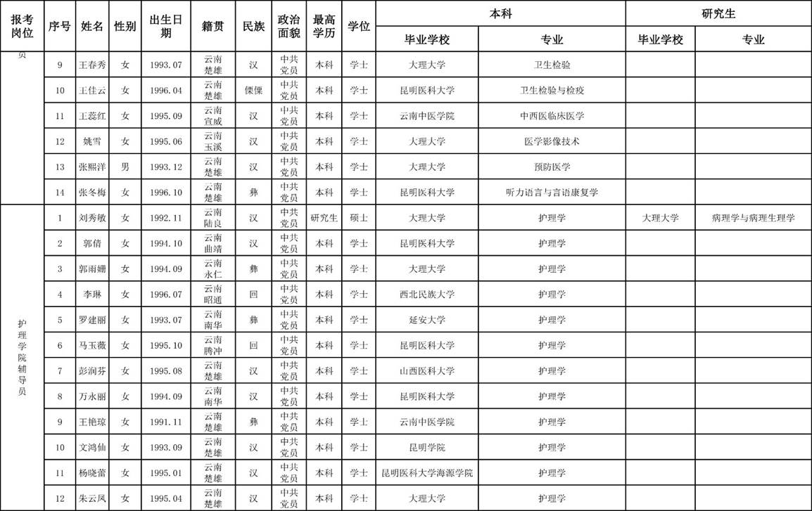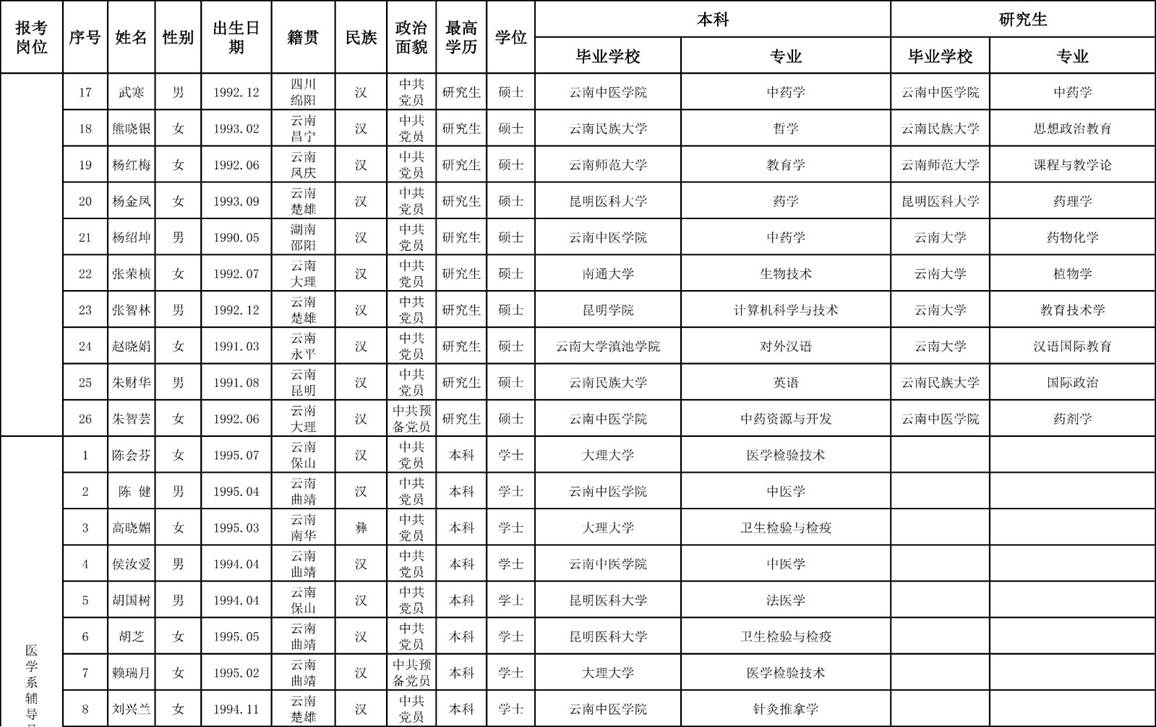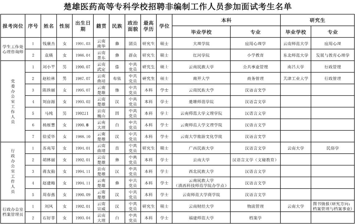 2、楚雄醫(yī)藥高等專科學(xué)校2018年公開招聘非編制工作人員面試考生名單。
