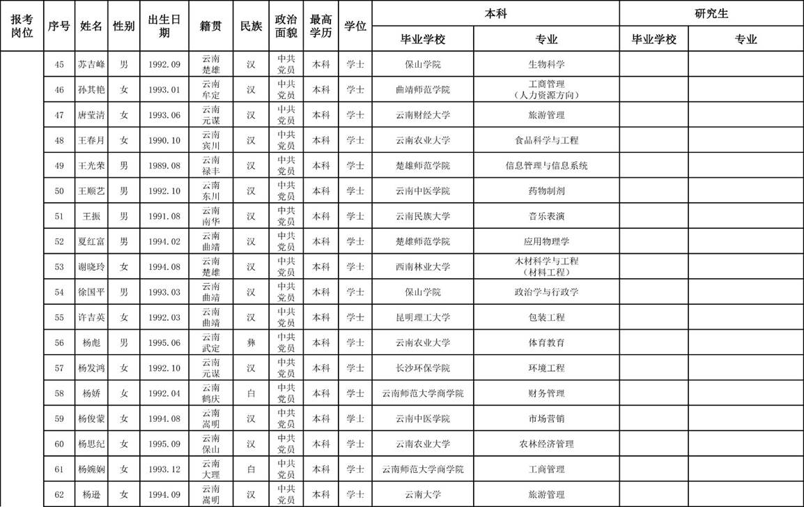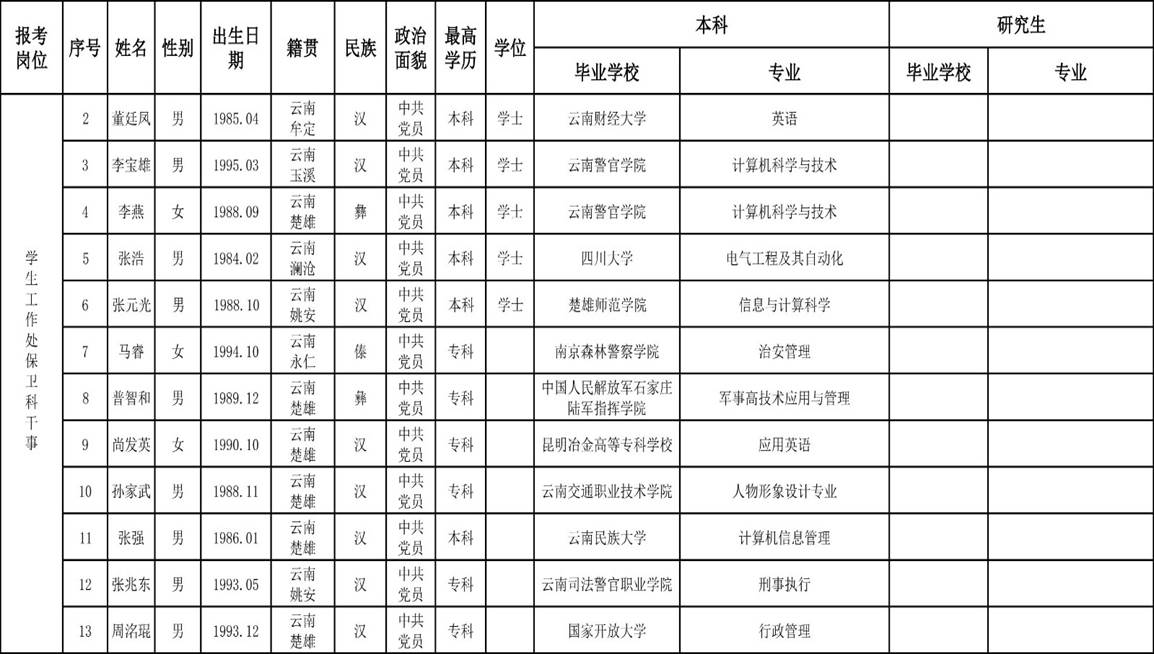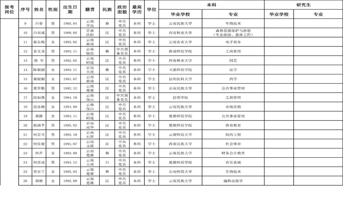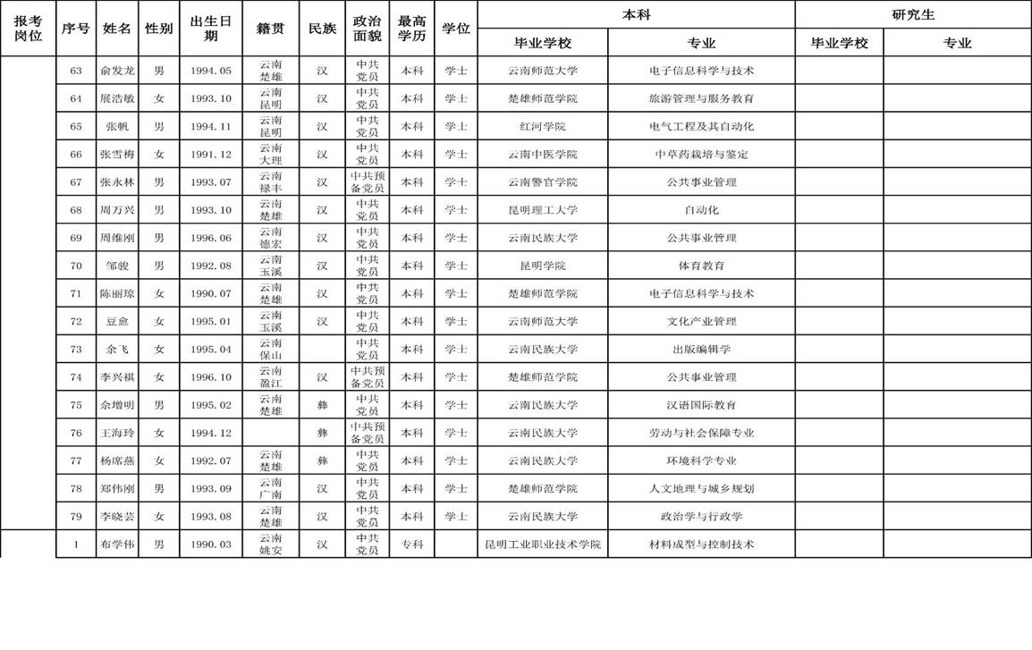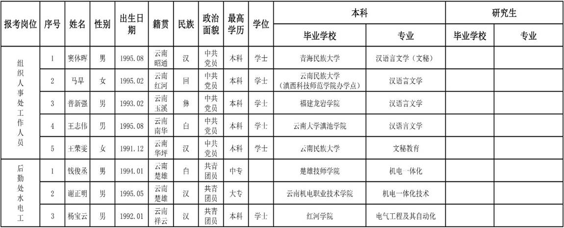 2、楚雄醫(yī)藥高等專科學(xué)校2018年公開招聘非編制工作人員面試考生名單。
