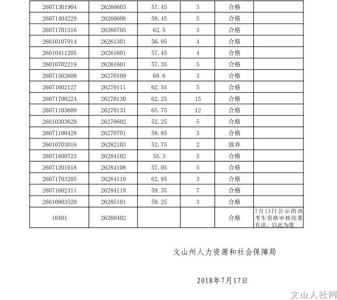 2018年文山州事業(yè)單位公開招聘工作人員資格復(fù)審結(jié)果