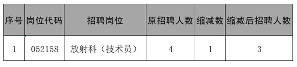 現(xiàn)將資格復(fù)審及專(zhuān)業(yè)技能考試后人數(shù)未達(dá)到面試開(kāi)考比例,相應(yīng)縮減擬招聘人數(shù)崗位,情況進(jìn)行公告。