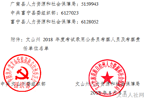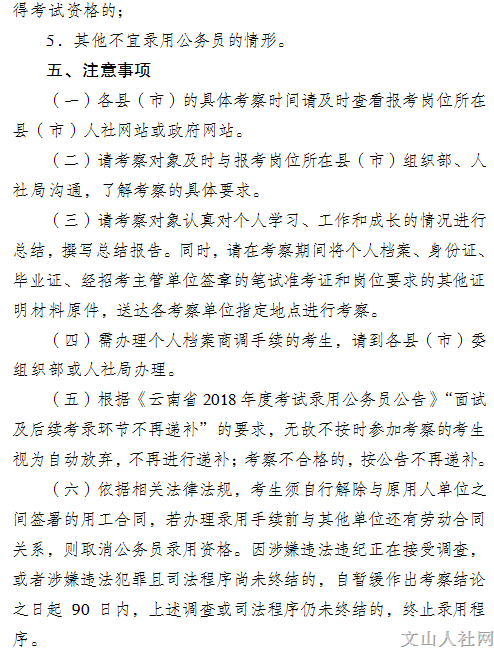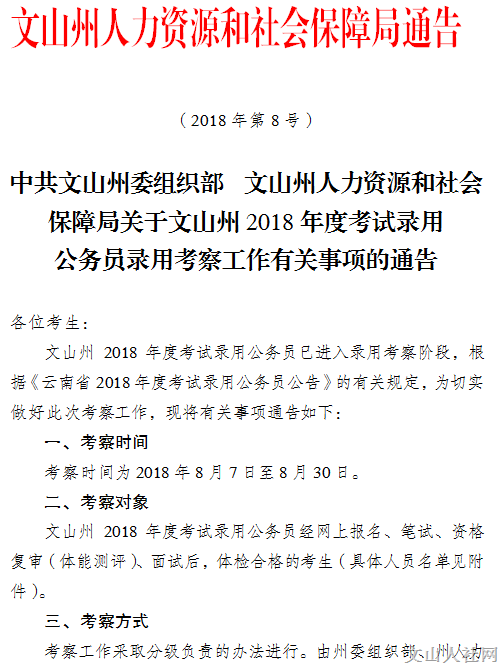 中共文山州委組織部文山州人力資源和社會保障局關(guān)于文山州 2018年度考試錄用 公務(wù)員錄用考察工作有關(guān)事項的通告