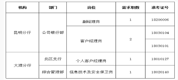 云南紅塔銀行昆明分行、大理分行社會(huì)招聘入圍人員公告