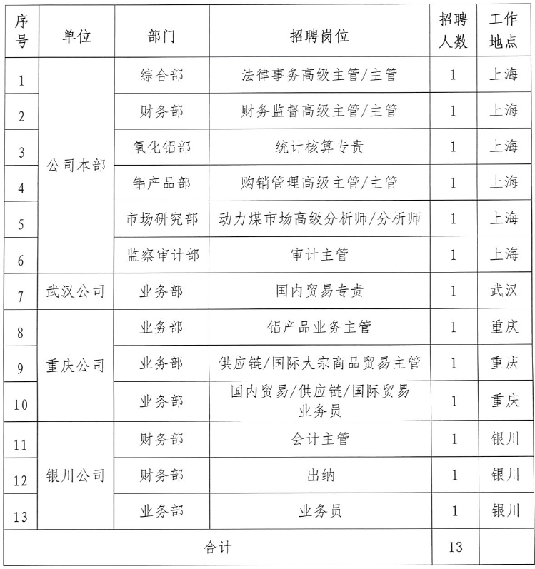 國家電投集團(tuán)鋁業(yè)國際貿(mào)易有限公司招聘公告