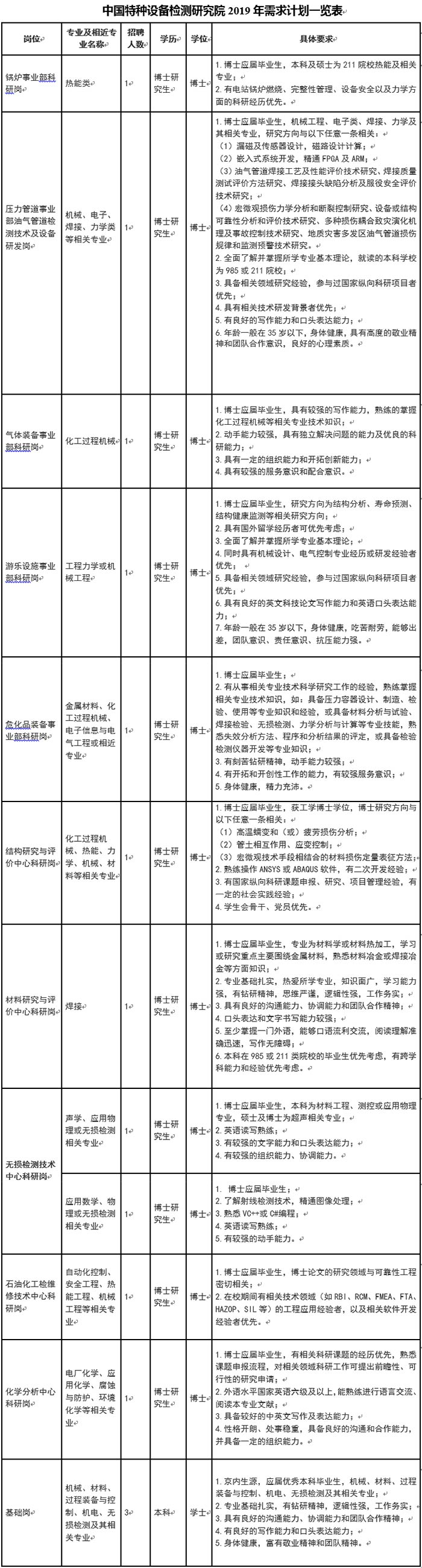 中國特種設備檢測研究院2019年招聘簡章