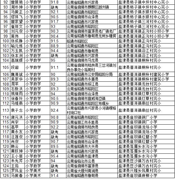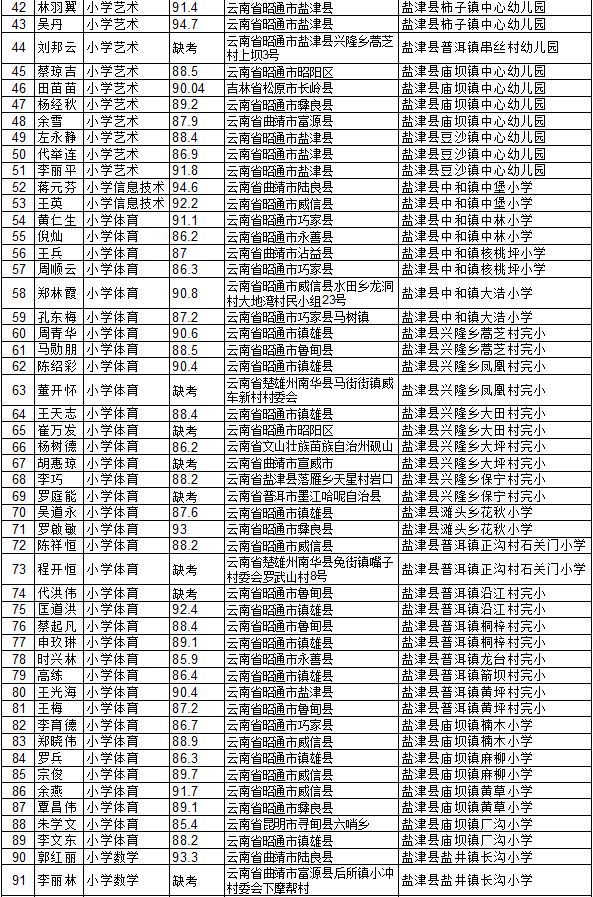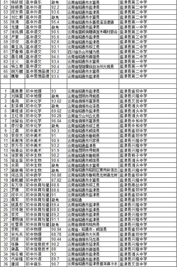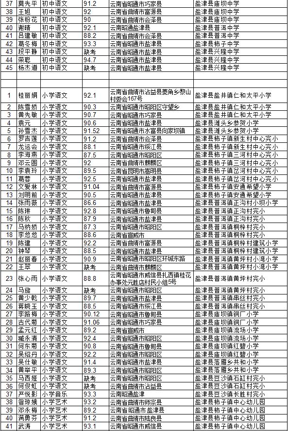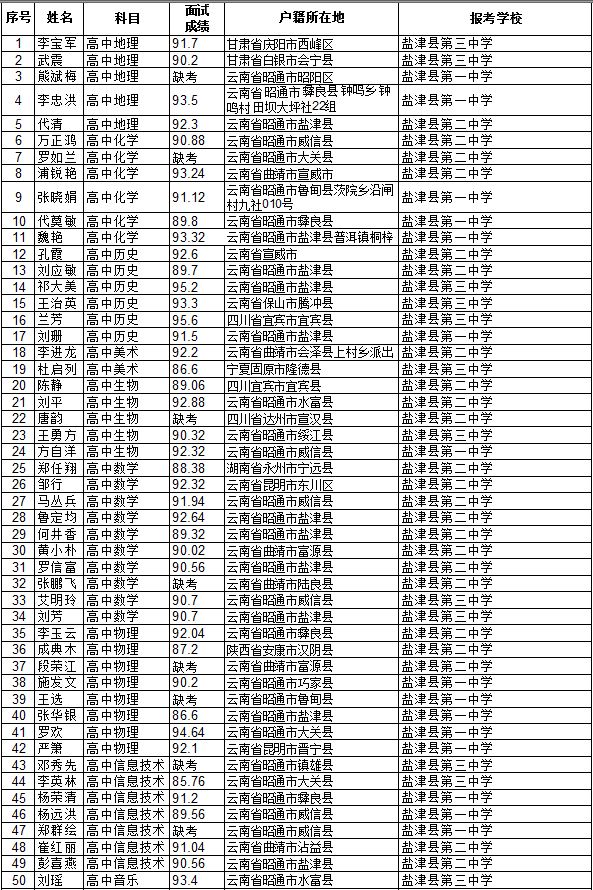 昭通市鹽津縣2014年特崗教師招聘面試成績公示