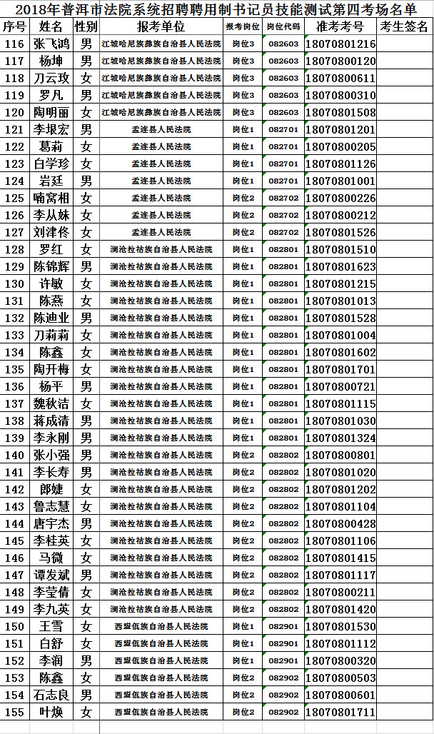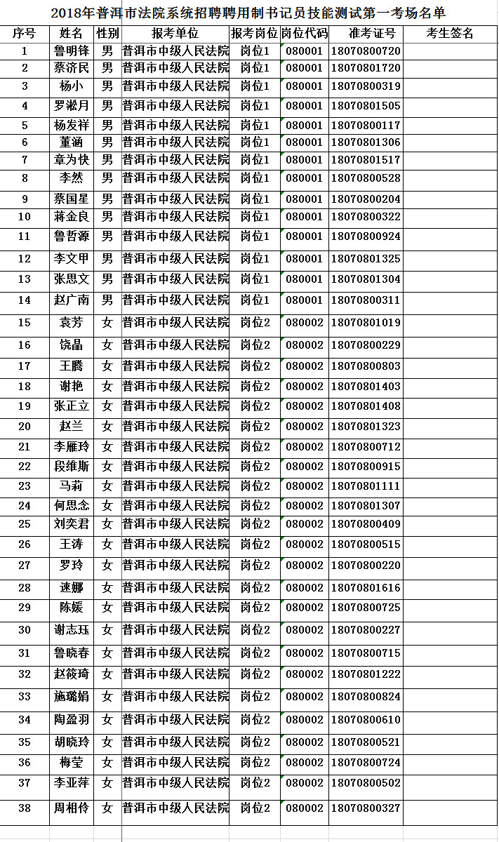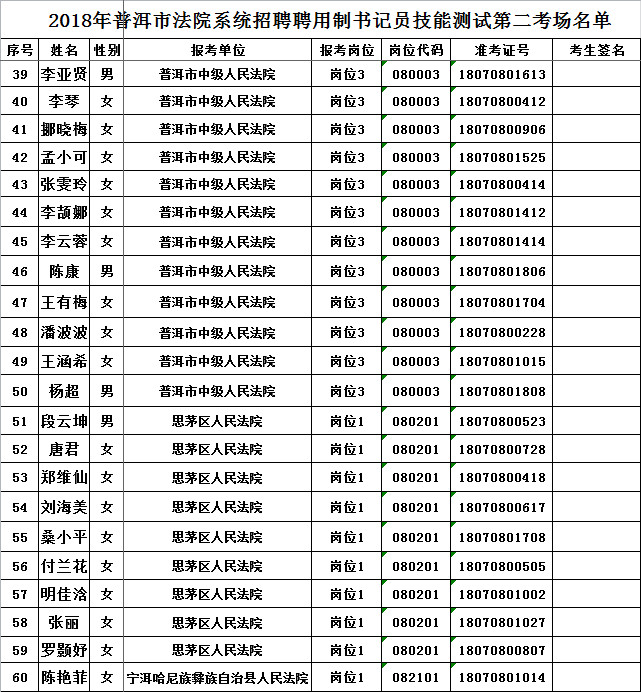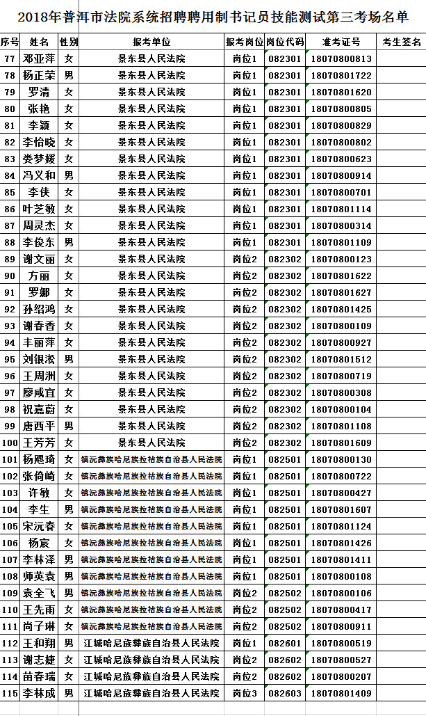 2018年普洱市法院系統(tǒng)招聘聘用制書記員技能測(cè)試考場(chǎng)名單