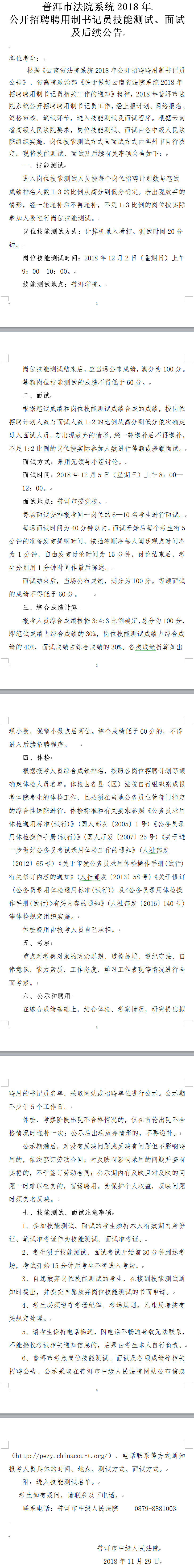 普洱市法院系統(tǒng)2018年招聘聘用制書(shū)記員技能測(cè)試、面試及后續(xù)公告