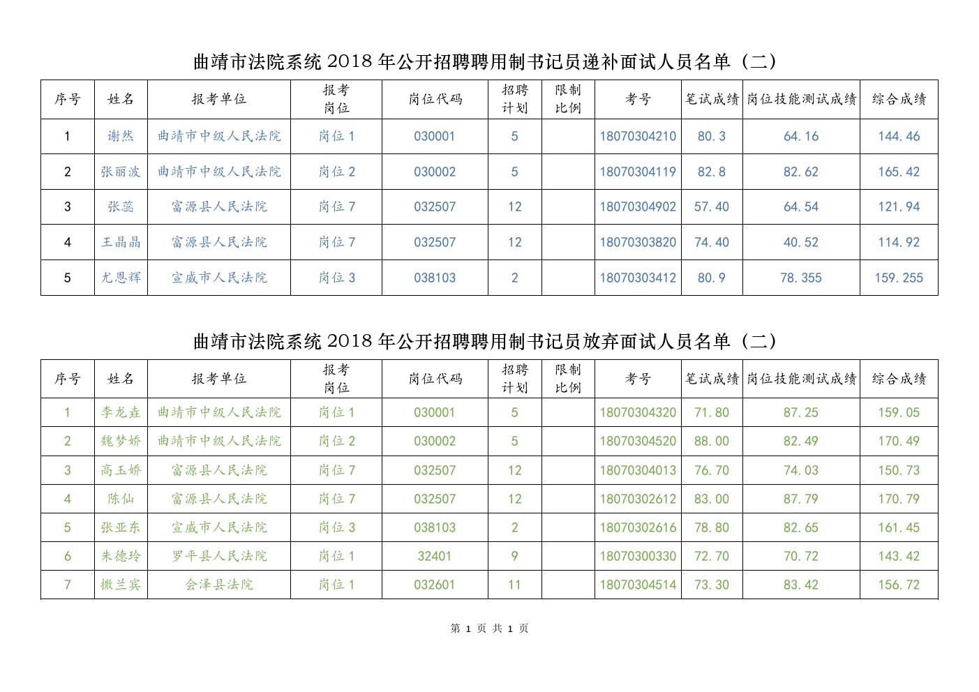 曲靖市法院系統(tǒng)2018年招聘聘用制書記員遞補(bǔ)面試名單