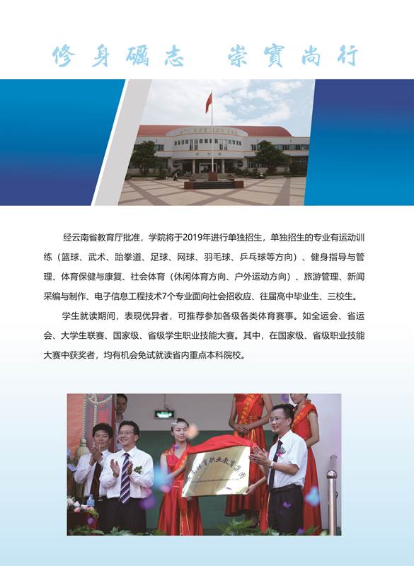 2019年云南體育運(yùn)動(dòng)職業(yè)技術(shù)學(xué)院高職單招招生簡(jiǎn)章