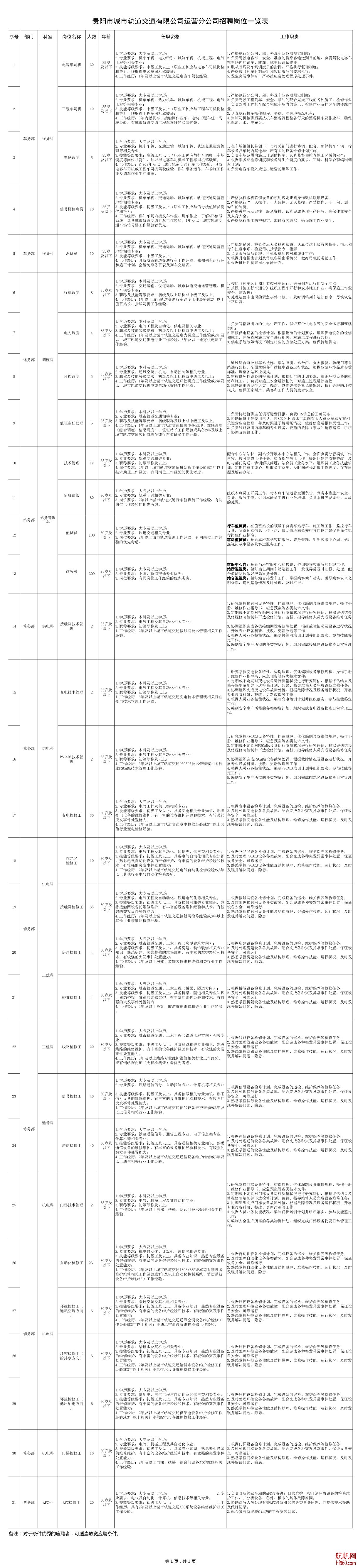 招聘的崗位及任職資格詳見附件《貴陽市城市軌道交通有限公司運營分公司招聘崗位一覽表》