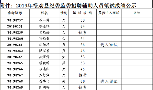 附件:2019年祿勸縣紀(jì)委監(jiān)委招聘輔助人員筆試成績(jī)公示