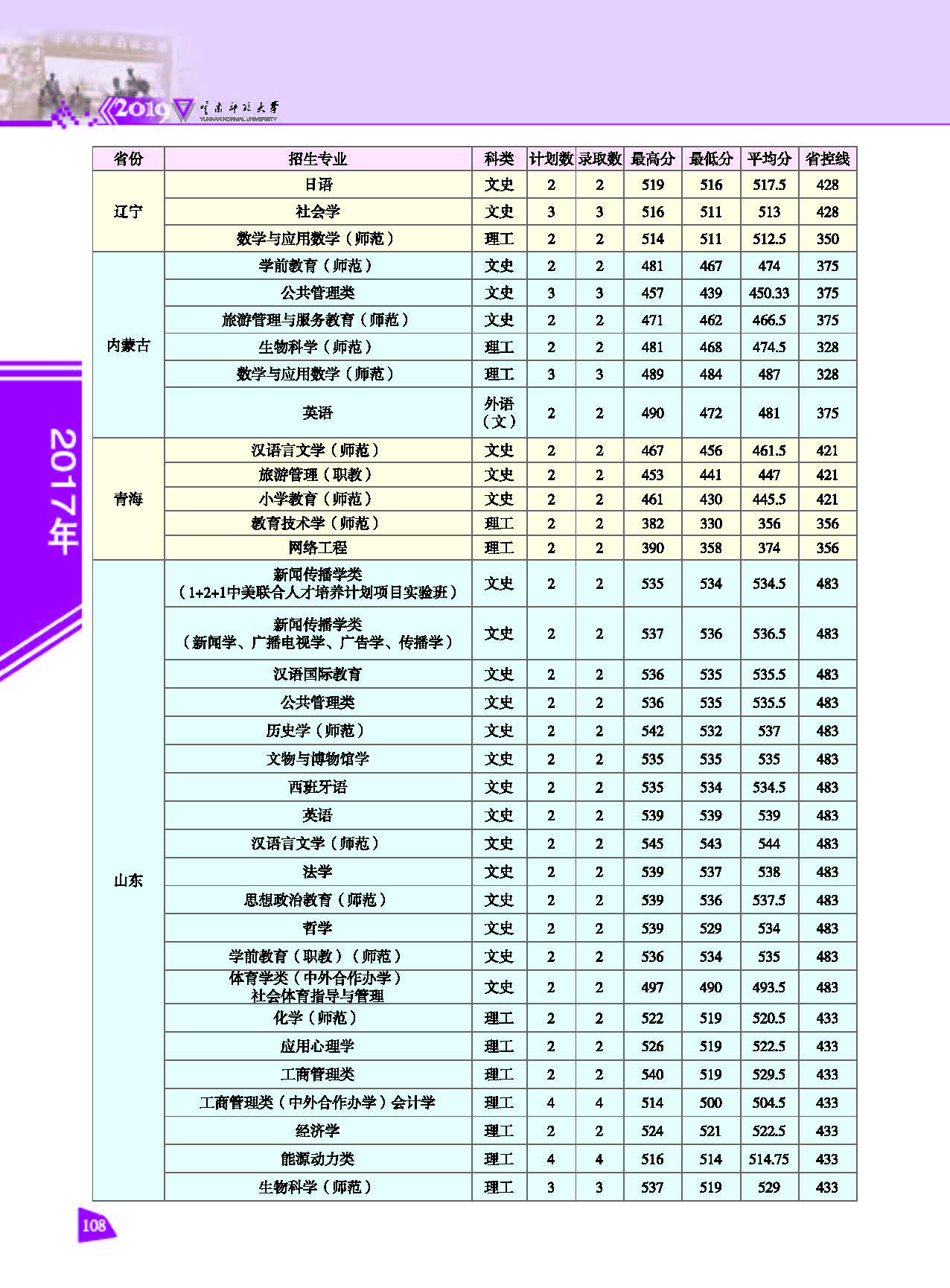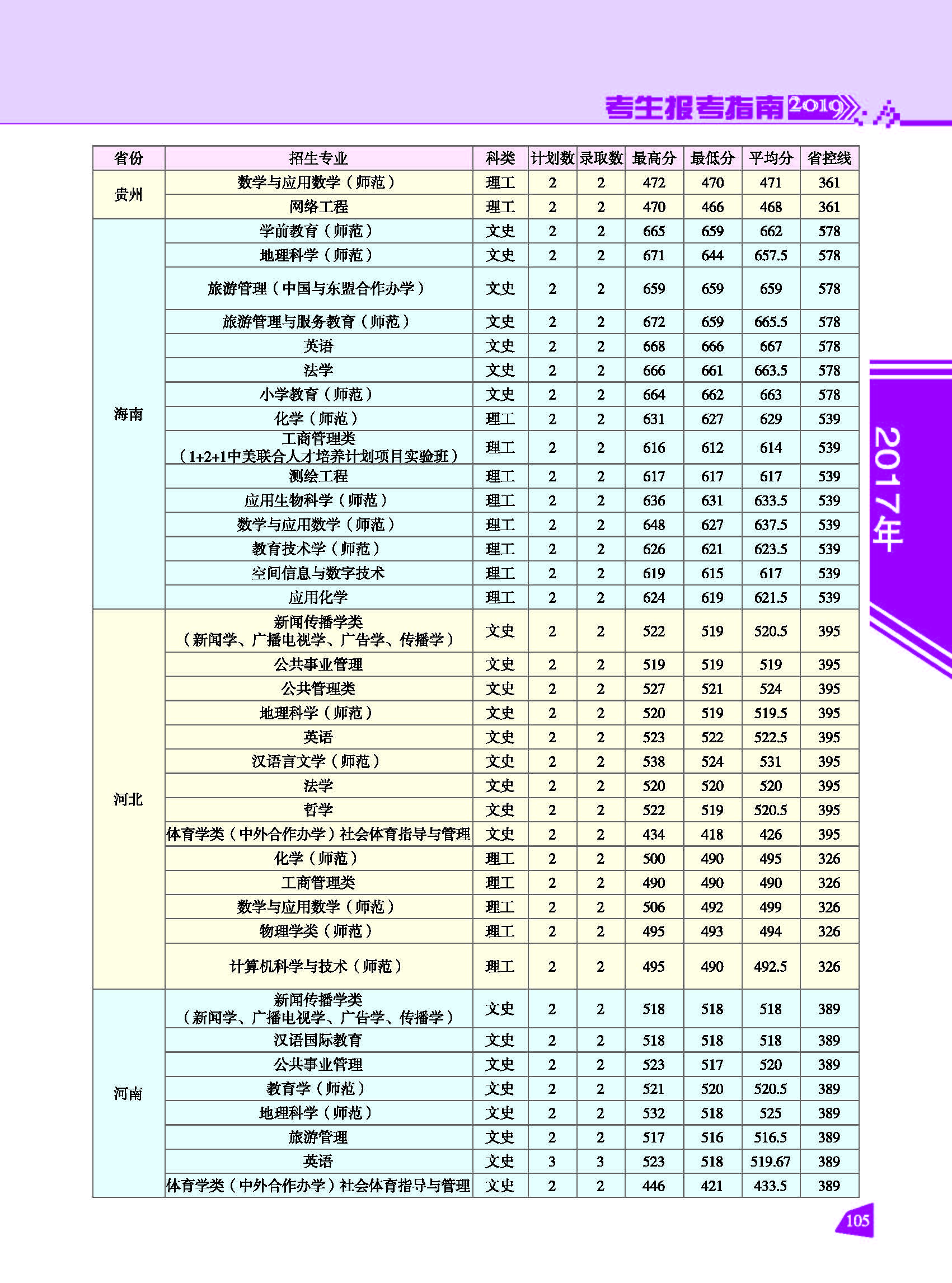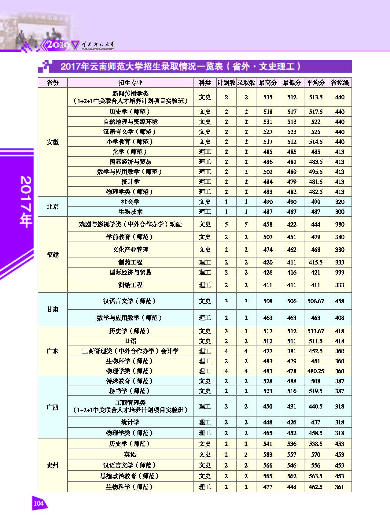 2017年云南師范大學招生錄取情況一覽表(省外.文史理工)