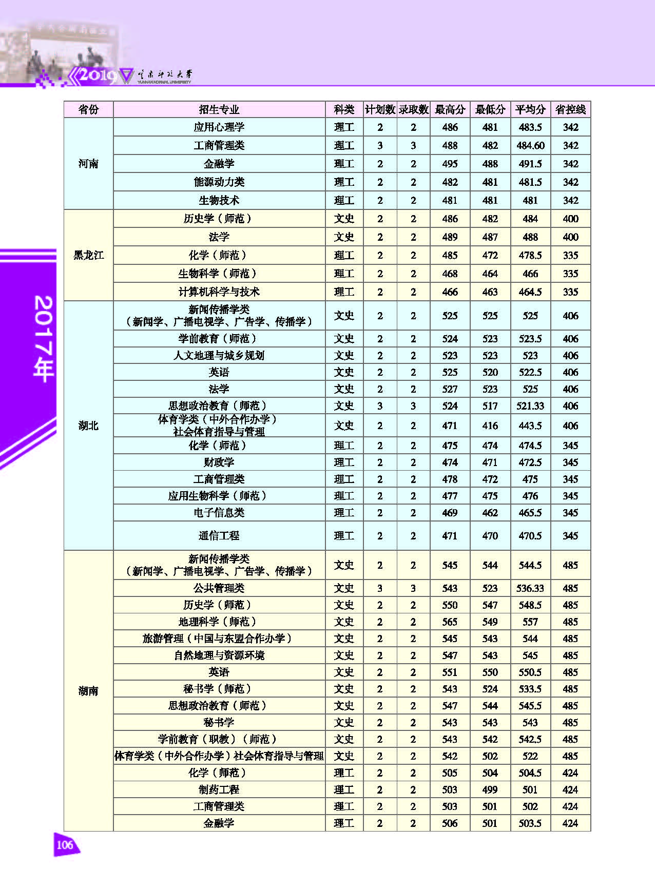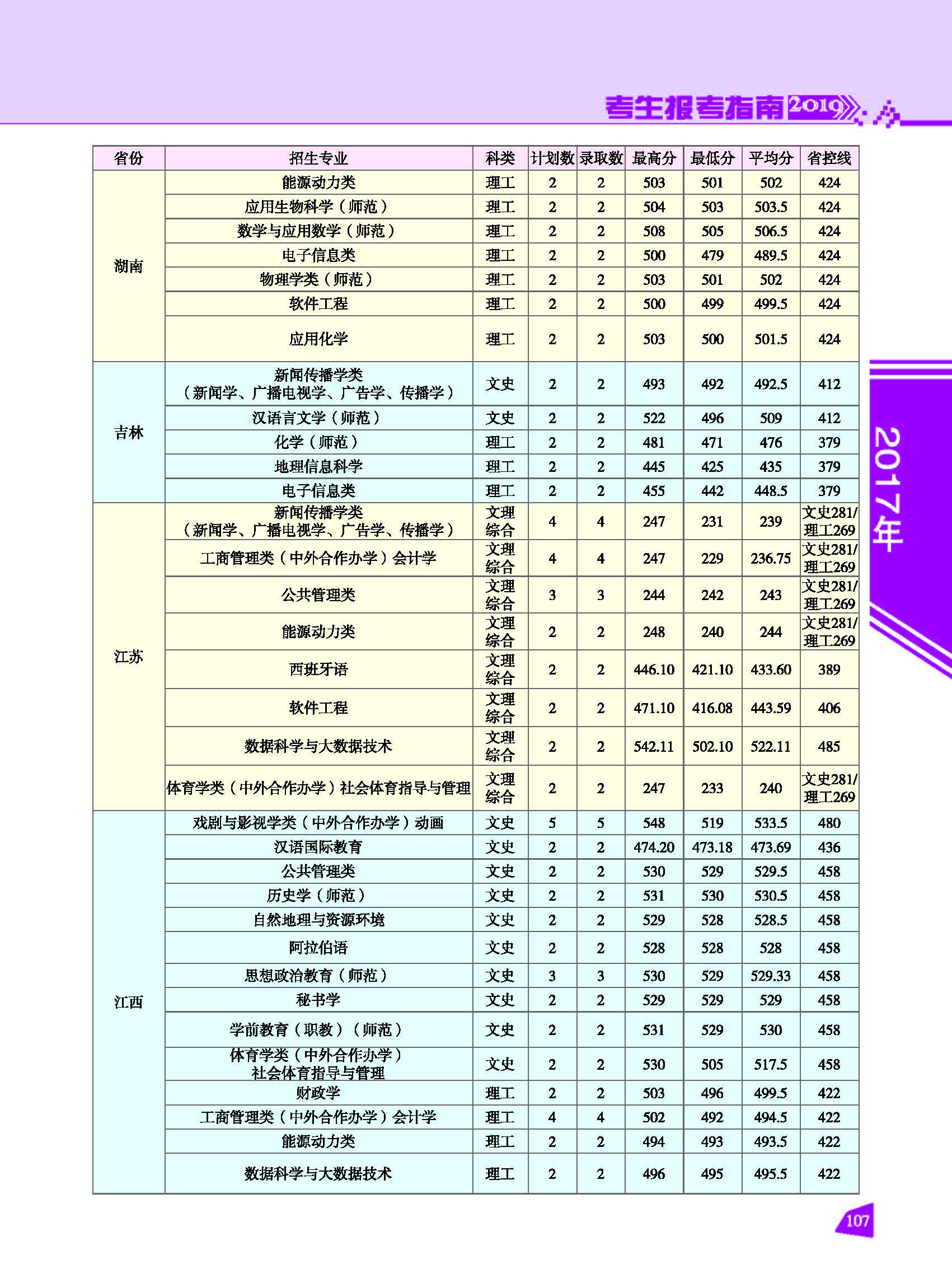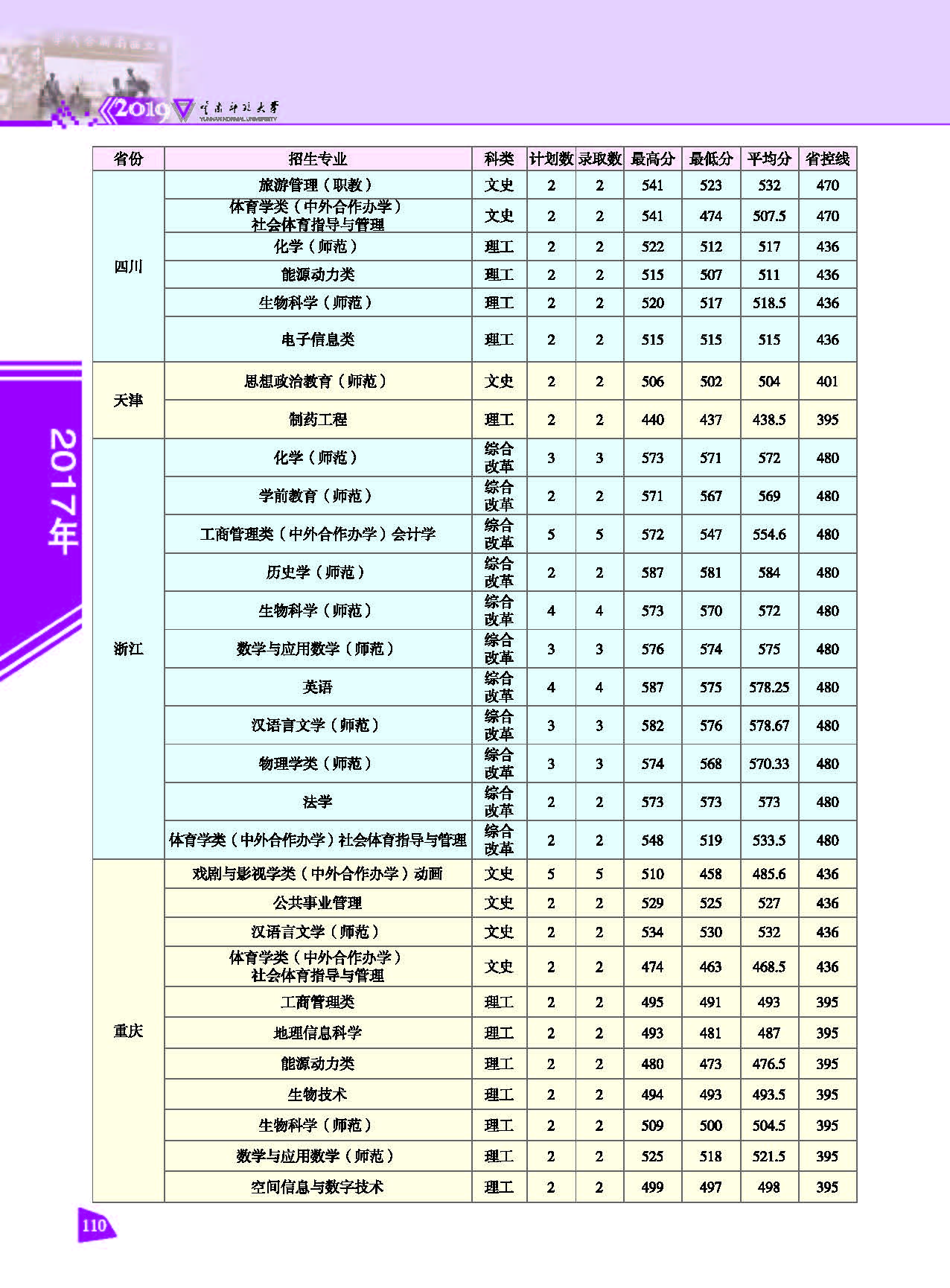 2017年云南師范大學招生錄取情況一覽表(省外.文史理工)