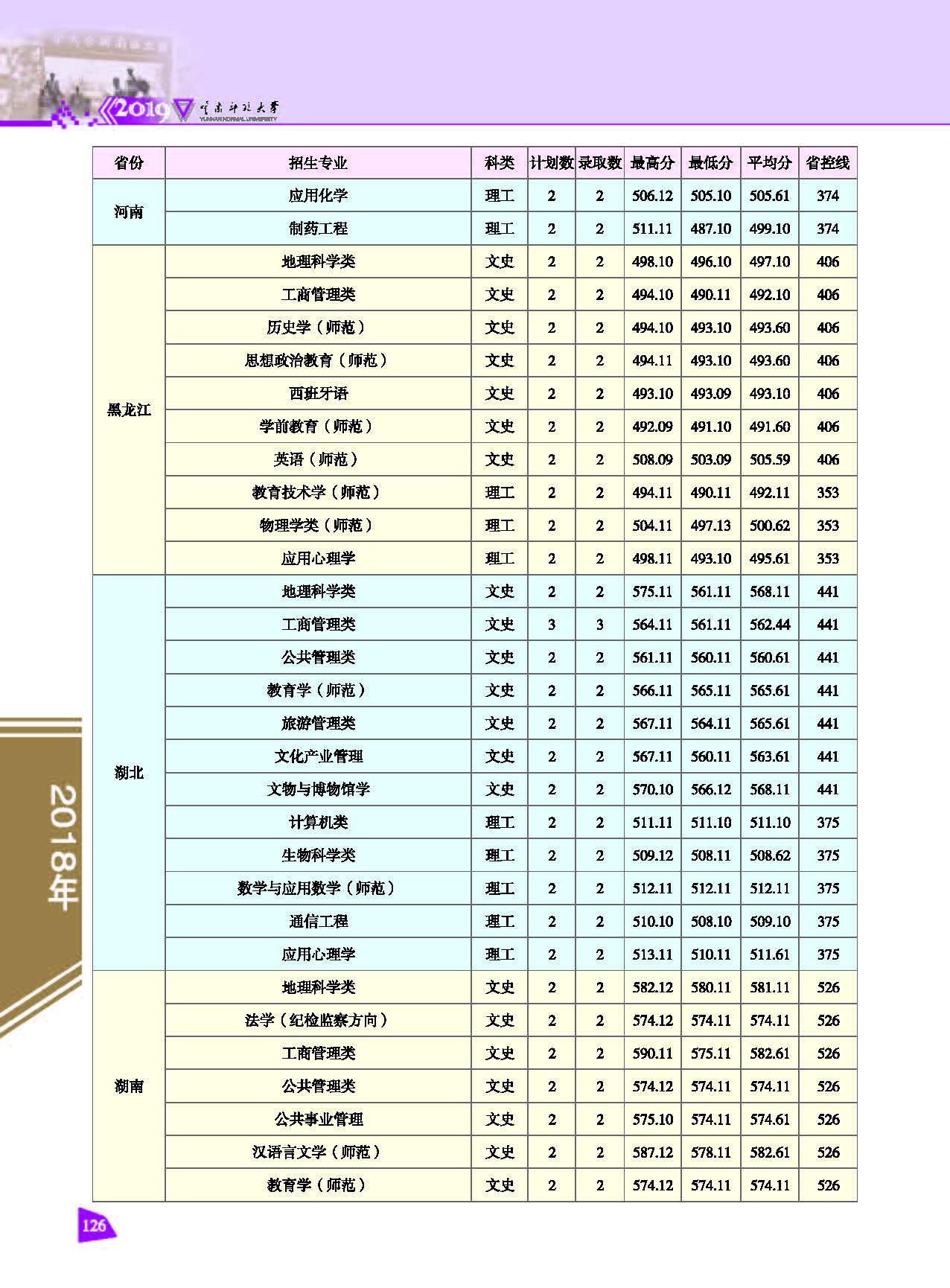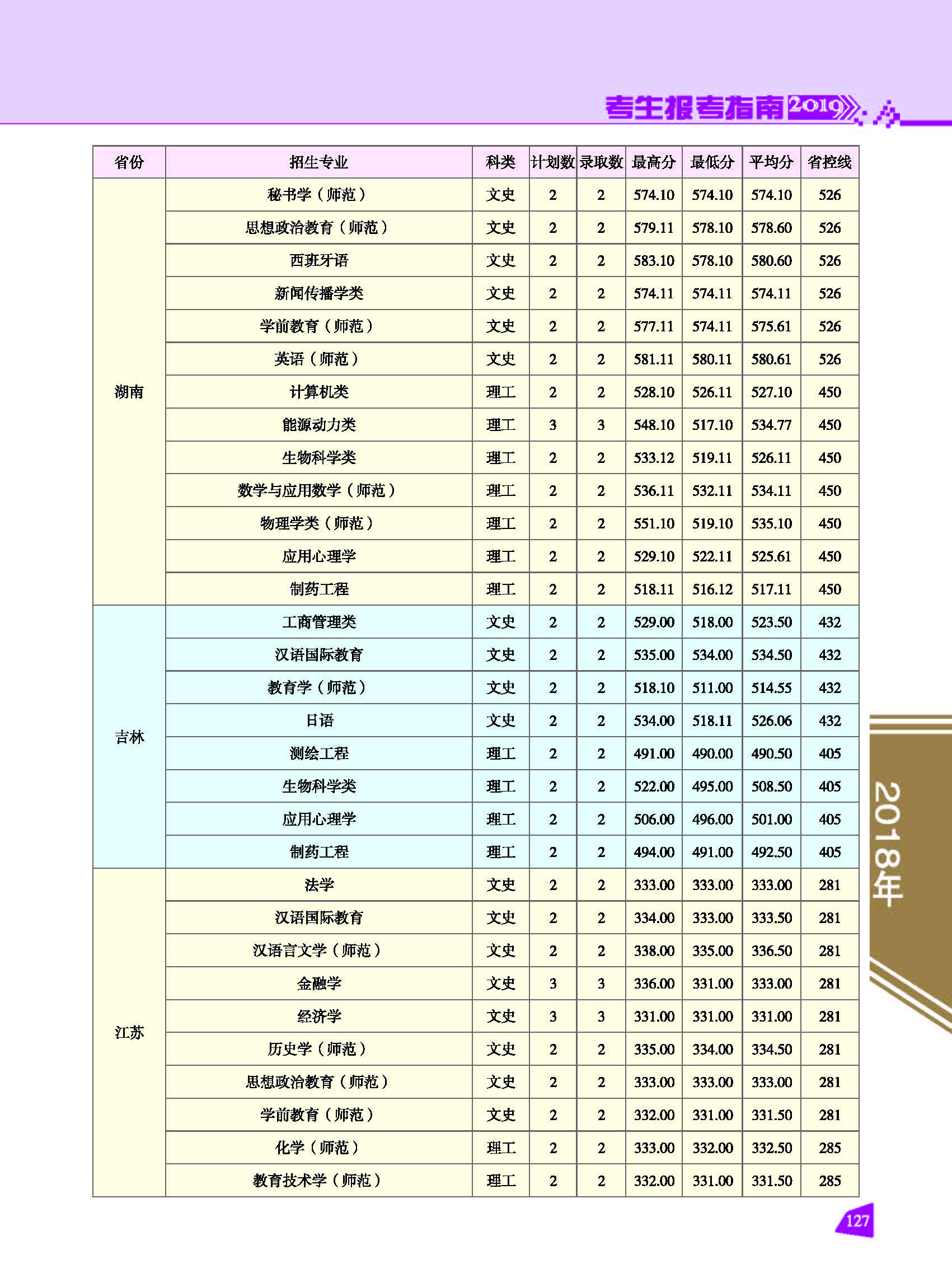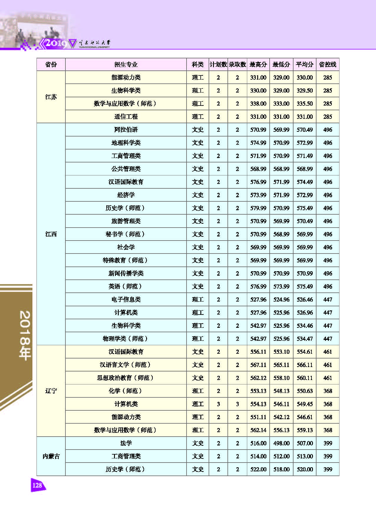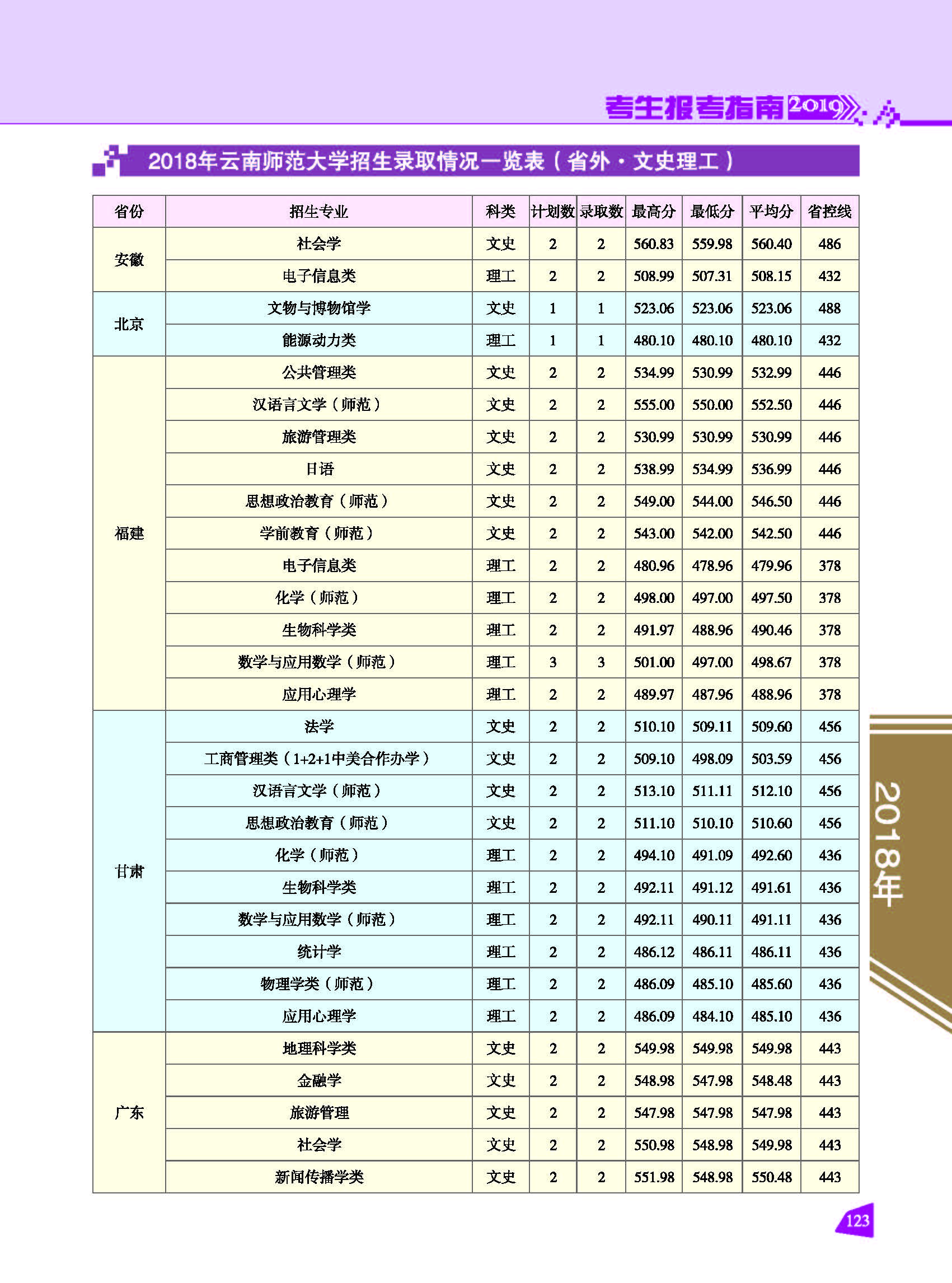 2018年云南師范大學招生錄取情況一覽表(省外.文史理工)