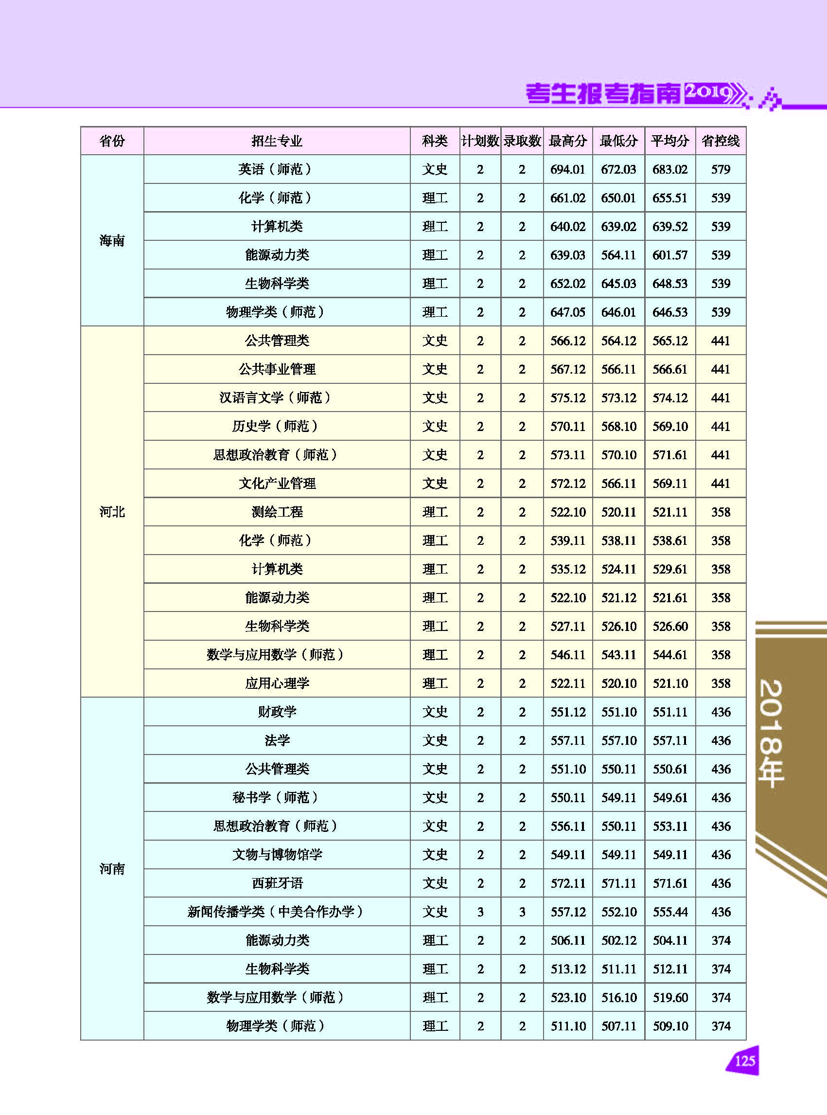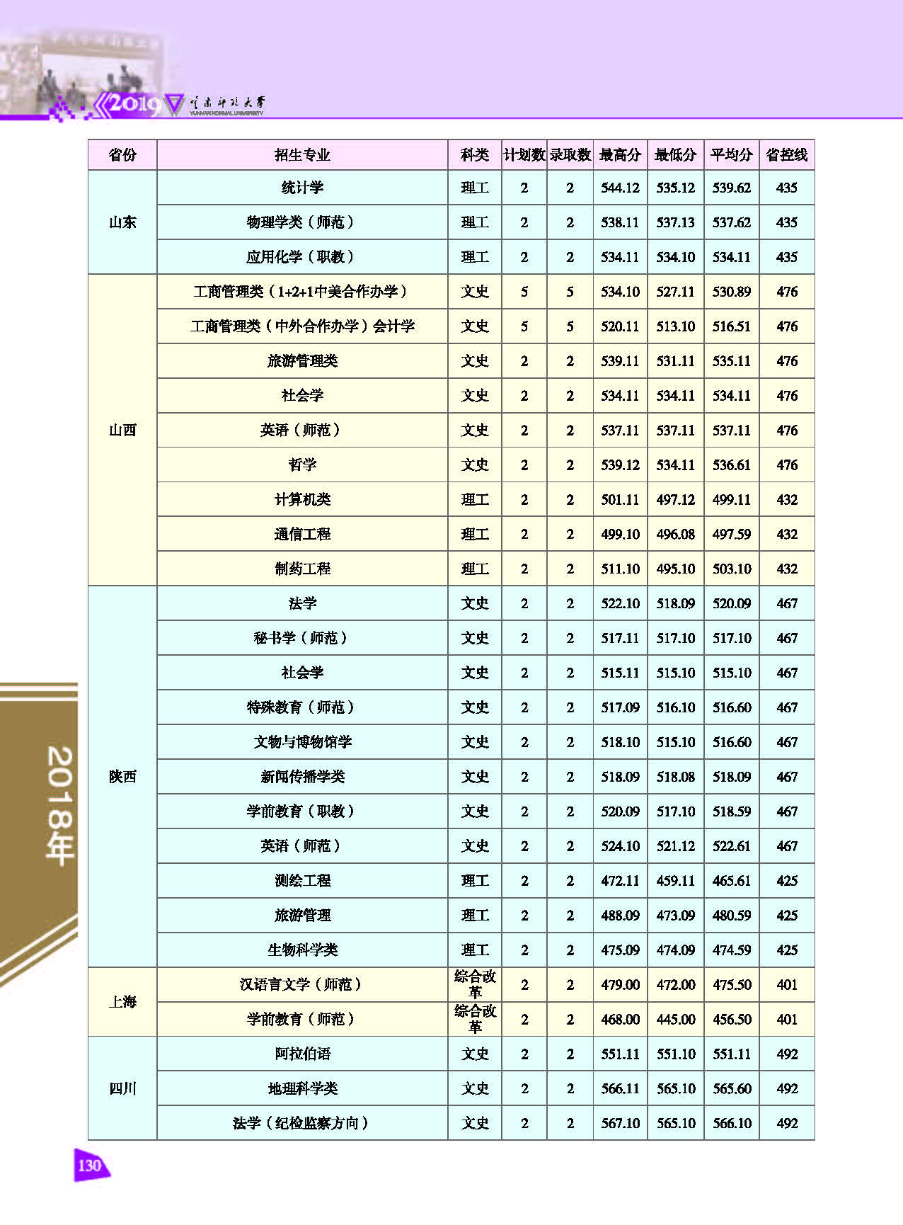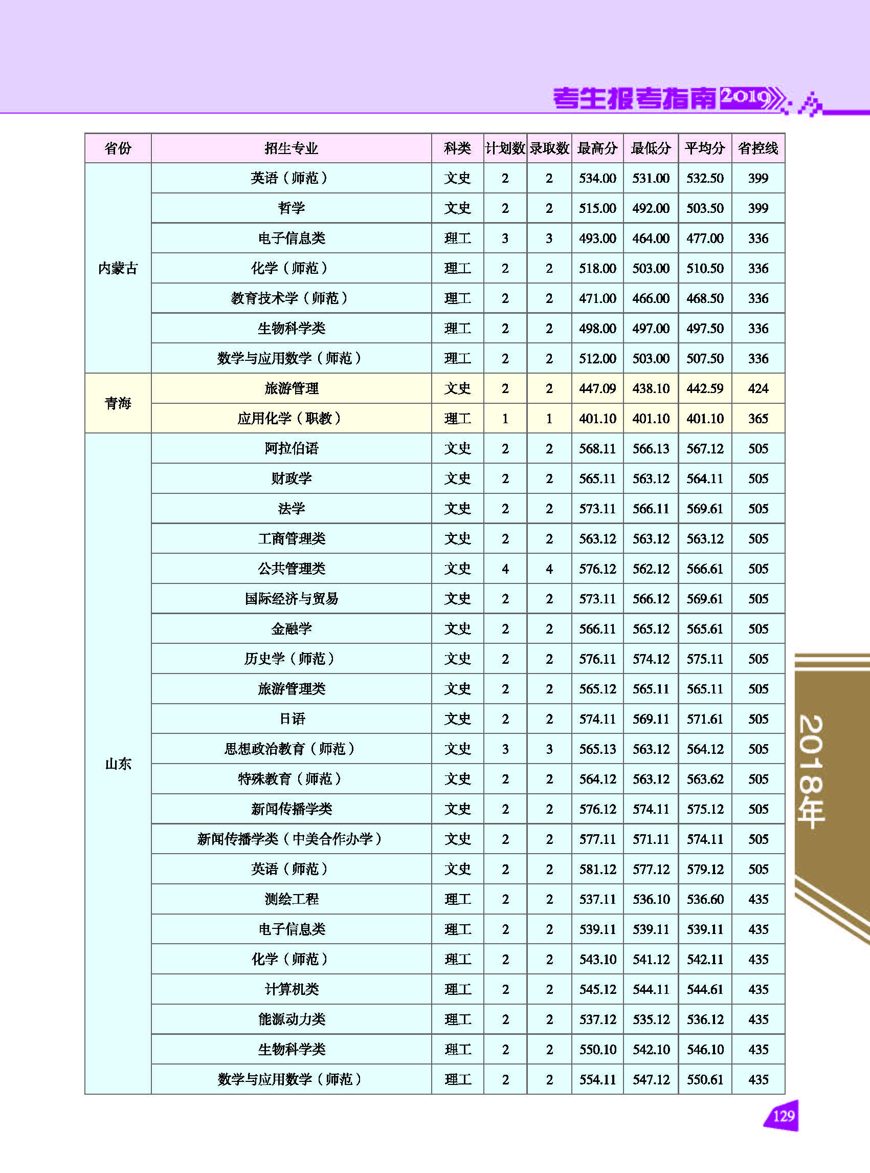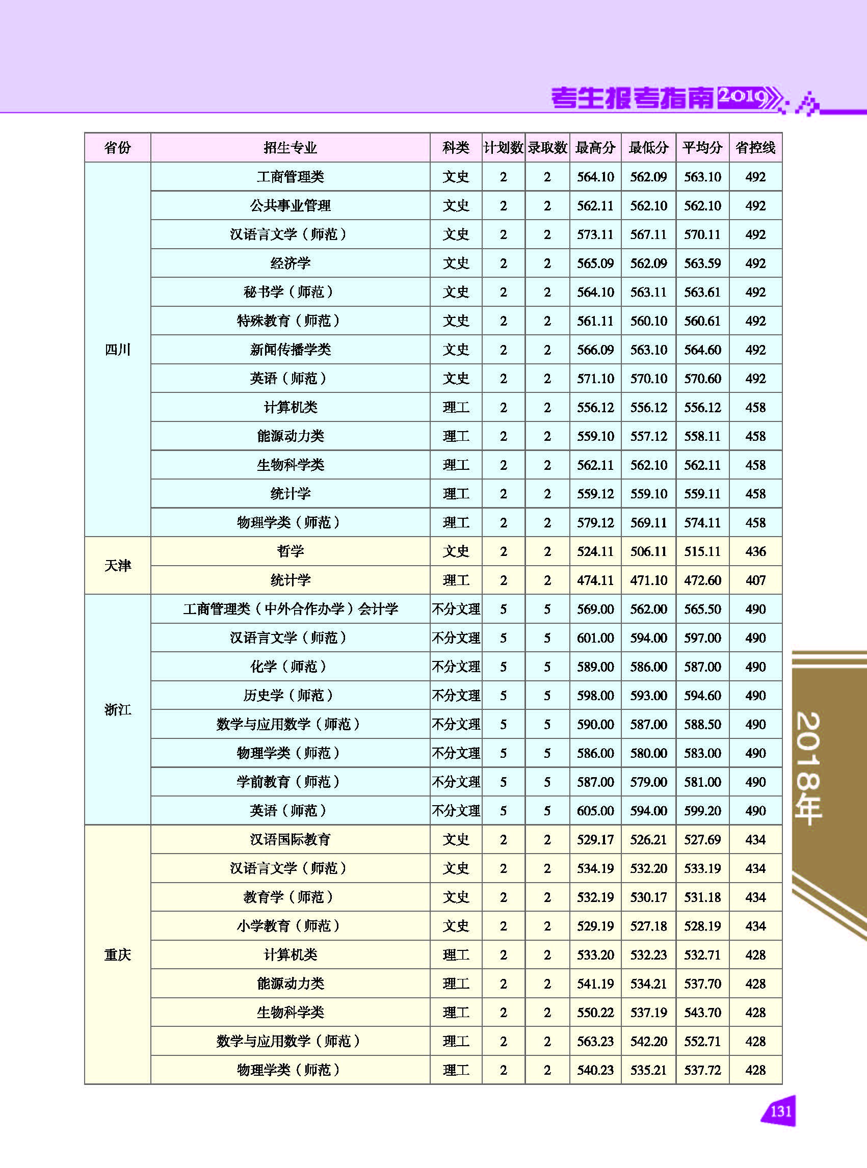 2018年云南師范大學招生錄取情況一覽表(省外.文史理工)