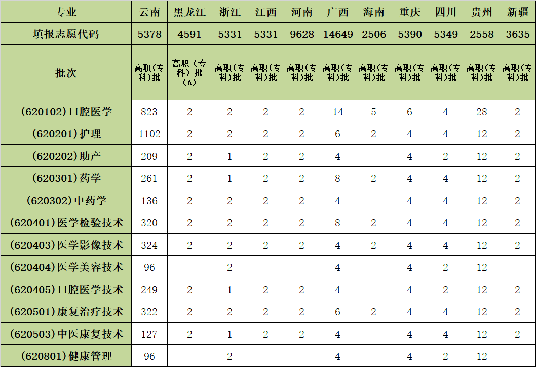 云南醫(yī)藥健康職業(yè)學(xué)院2020年各省招生