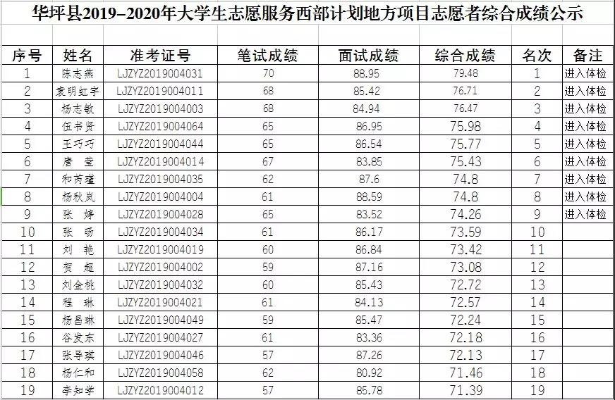 根據《關于開展2019-2020年度云南省大學生志愿服務西部計劃省級地方項目的通知》(麗志項辦通〔2019〕1號)文件相關要求,華坪縣2019-2020年度大學生志愿服務西部計劃省級地方項目招募志愿者面試工作已于2019年7月14日完成。