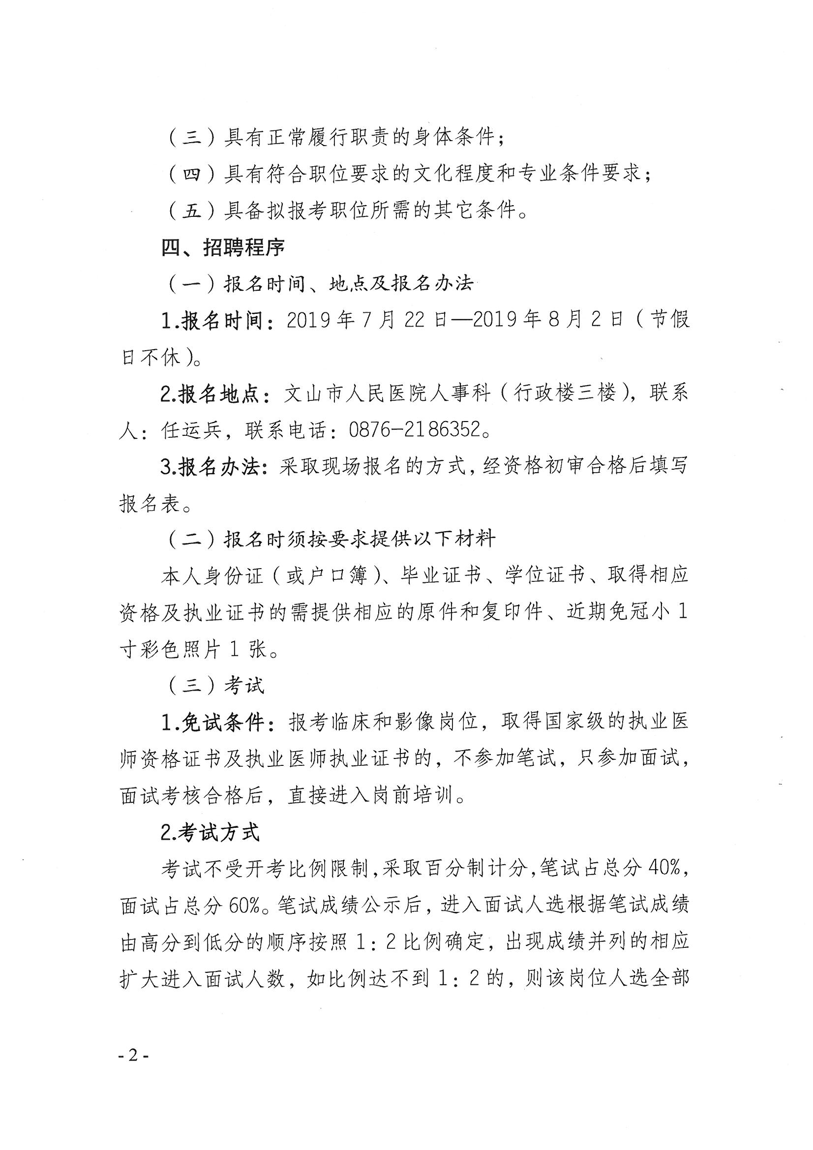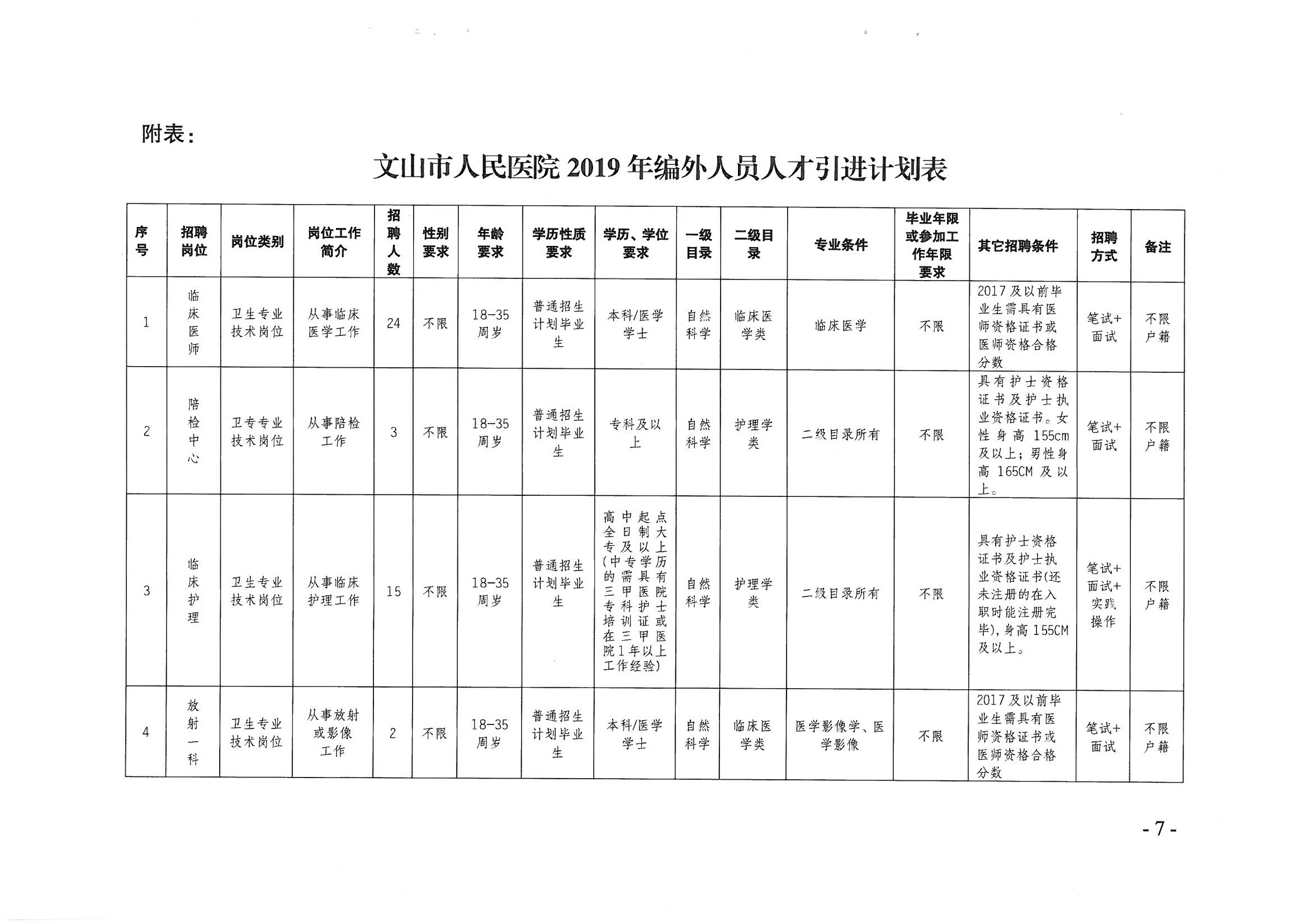 文山市人民醫(yī)院2019年招聘一批編外人員的公告
