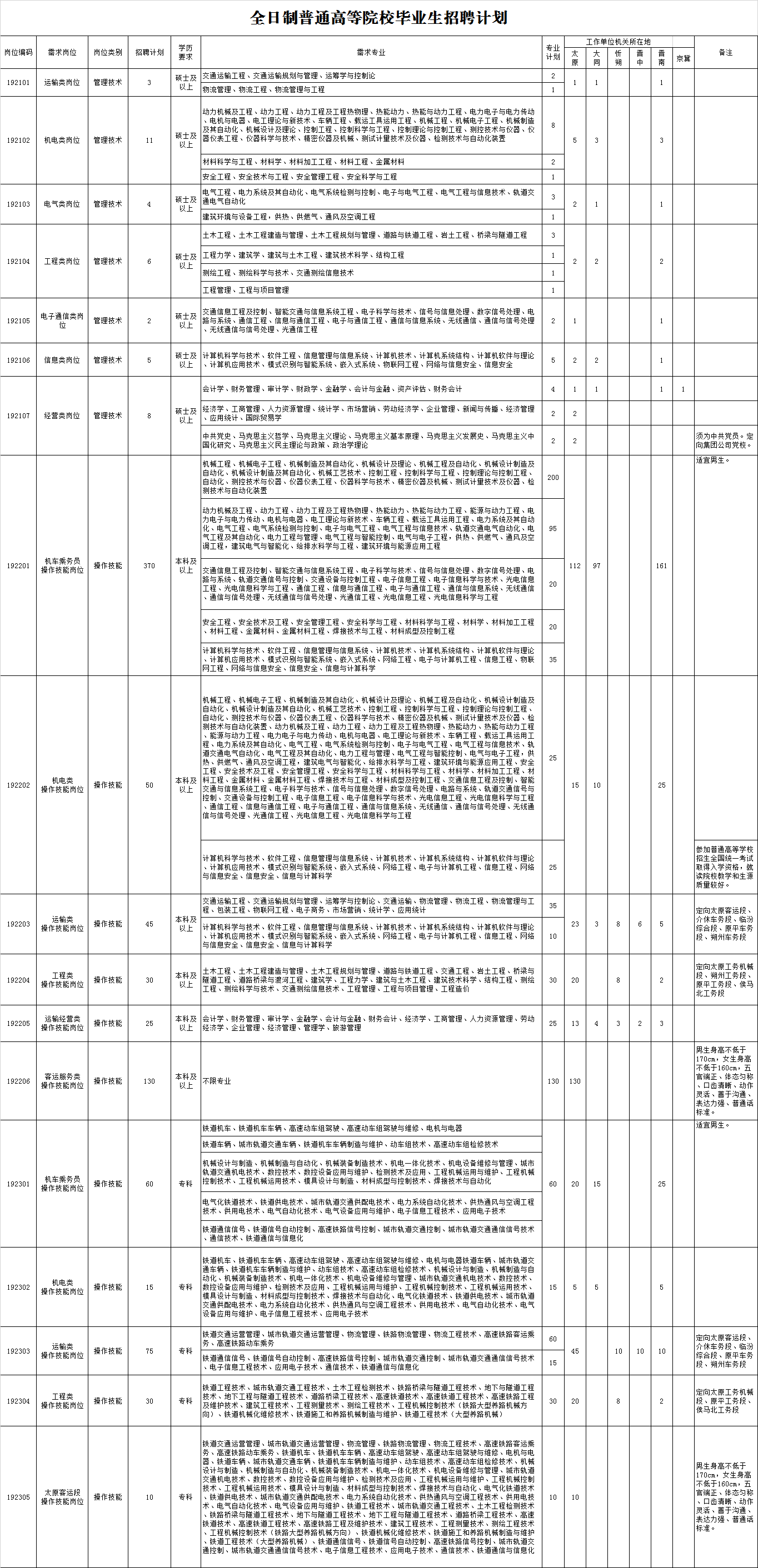 (二)??茖W(xué)歷畢業(yè)生。列入國家招生計劃,于畢業(yè)學(xué)年取得畢業(yè)證。就讀院校須在鐵路行業(yè)領(lǐng)域內(nèi)有較高知名度,開設(shè)有鐵路特色專業(yè),所學(xué)專業(yè)為鐵路方向,所學(xué)主要課程為鐵路主專業(yè)課程。具備派遣資格的2019年全日制普通高等院校應(yīng)屆畢業(yè)生。